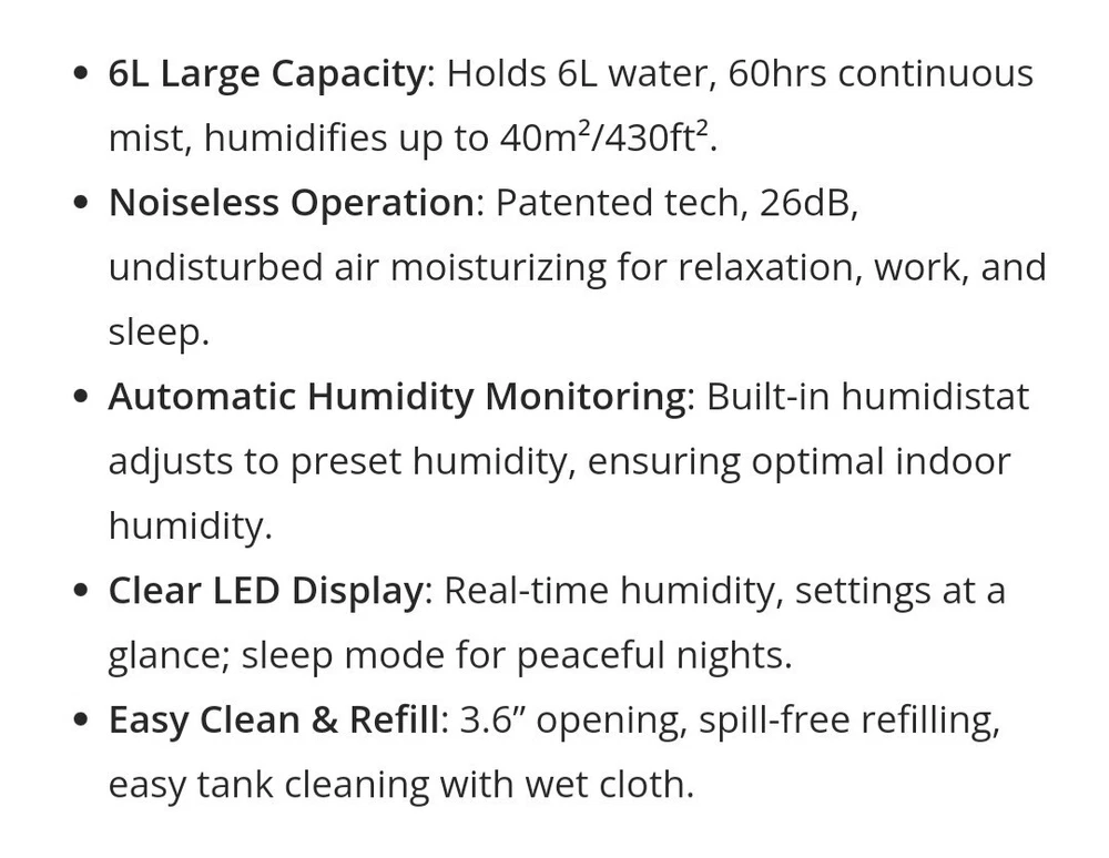 """Brand New Open Box""" TaoTronics 6L Ultrasonic Cool Mist Humidifier LED Display ""26DB WHISPER QUIET""" Model: AH044 Color: Black Introducing the TaoTronics TT-AH044 Ultrasonic Cool Mist Humidifier with a sleek black design, perfect for personal or whole room application. With a 6L tank capacity and digital display, this humidifier is both powerful and easy to use. The cool mist humidification method and electrical power source make it an efficient addition to any indoor space. This brand new, open box unit is made in China and comes with all the standard features, including LED display and a voltage of 120V. Improve your indoor air quality with the TaoTronics TT-AH044 Ultrasonic Cool Mist Humidifier. SHIPPING & HANDLING: Most orders are Processed within 1 business day "Handling time" on business days Monday-Friday. (weekends and holidays excluded) All orders are Tracked Shipping. Take a peek at all my other products I have for sale, you never know I might have something you are looking for. Thank you and have a great day.