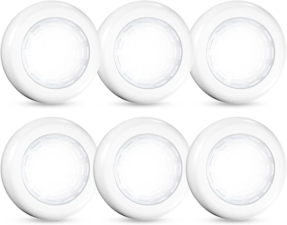 Bulb Shape Size: B10 Color: 6-Pack UPC: 705353740114 Batteries Included?: No Room Type: RV, Cabinet, Kitchen, Closet, Bedroom Power Source: Battery Powered Color Temperature: 6000 Kelvin Number of Items: 6 Control Method: Touch Shade Color: White Wattage: 1 watts Mounting Type: Desktop Special Features: Touch Switch, Cordless, Small and Portable, Smooth and Round, Wit Brand: Does not apply Shade Height: 1 Inches Bulb Features: Not Dimmable Lamp Type: LED Number of Pieces: 6 Lighting Method: Downlight Maximum Compatible Wattage: 1 Watts Connectivity Protocol: USB Light Source Type: LED Style: Modern Specific Uses For Product: indoor and outdoor, around the home, including kitchen, bathroom, Brightness: 50 Lumen Product Dimensions: 2.7"D x 2.7"W x 1"H Type: Does not apply Base Material: Plastic Number of Light Sources: 6 Is Cordless?: Yes Batteries Required?: No Voltage: 1.5 Volts (DC) Controller Type: Push Button Water Resistance Level: Not Water Resistant Average Life: 100000 Hours Item Weight: 1.12 ounces Shape: Shell Indoor/Outdoor Usage: Outdoor, Indoor Installation Type: Sticky Connectivity Technology: USB Material: Acrylonitrile Butadiene Styrene gtin13: 705353740114 Bulb Base: GU10 Is Waterproof: false Efficiency: High Energy Efficiency Special Feature: Touch Switch, Cordless, Small and Portable, Smooth and Round, Wit Recommended Uses For Product: Decoration