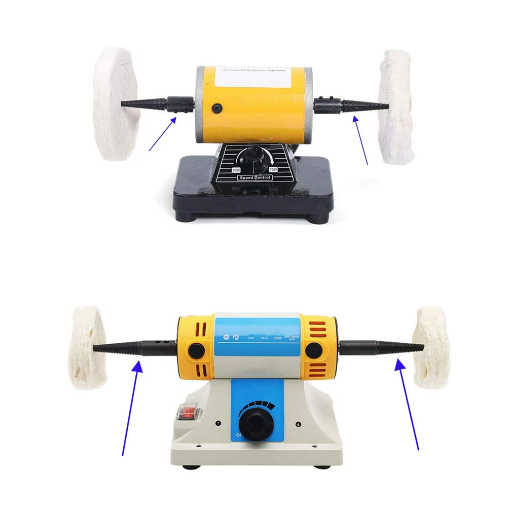 Spindle adapter right and left hand for bench grinder Please noted: This bench grinder spindle adapter is used on bench grinder with 8mm arbor shaft Used to converting your bench grinder into a bench polisher using this bench grinder spindles,and they are held in place by grub screws Using guide: Firstly romove the outer guard, grinding stone and inner guard on your bench grinder step by step, then fix the spindle adapter to the shaft of the bench grinder, and fix tight with the grub screw, now you have a bench polisher You can get 2 pieces ( right hand and left hand ) This bench grinder spindle adapter is used on bench grinder with 8mm arbor shaft Bench grinder spindle extension: used to converting your bench grinder into a bench polisher using this bench grinder spindles,and they are held in place by grub screws Item includes 2pcs right hand and left hand bench grinder spindle adapter Easy assembly,quick polishing wheel change and more room for polishing working Size: please check the detail illustration