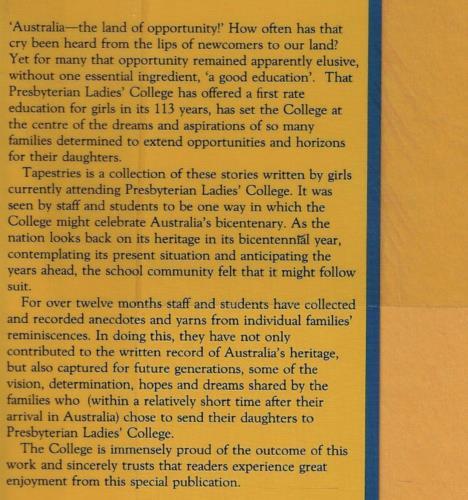 Tapestries - Family Histories of Presbyterian Ladies College ; by Pressley - HC