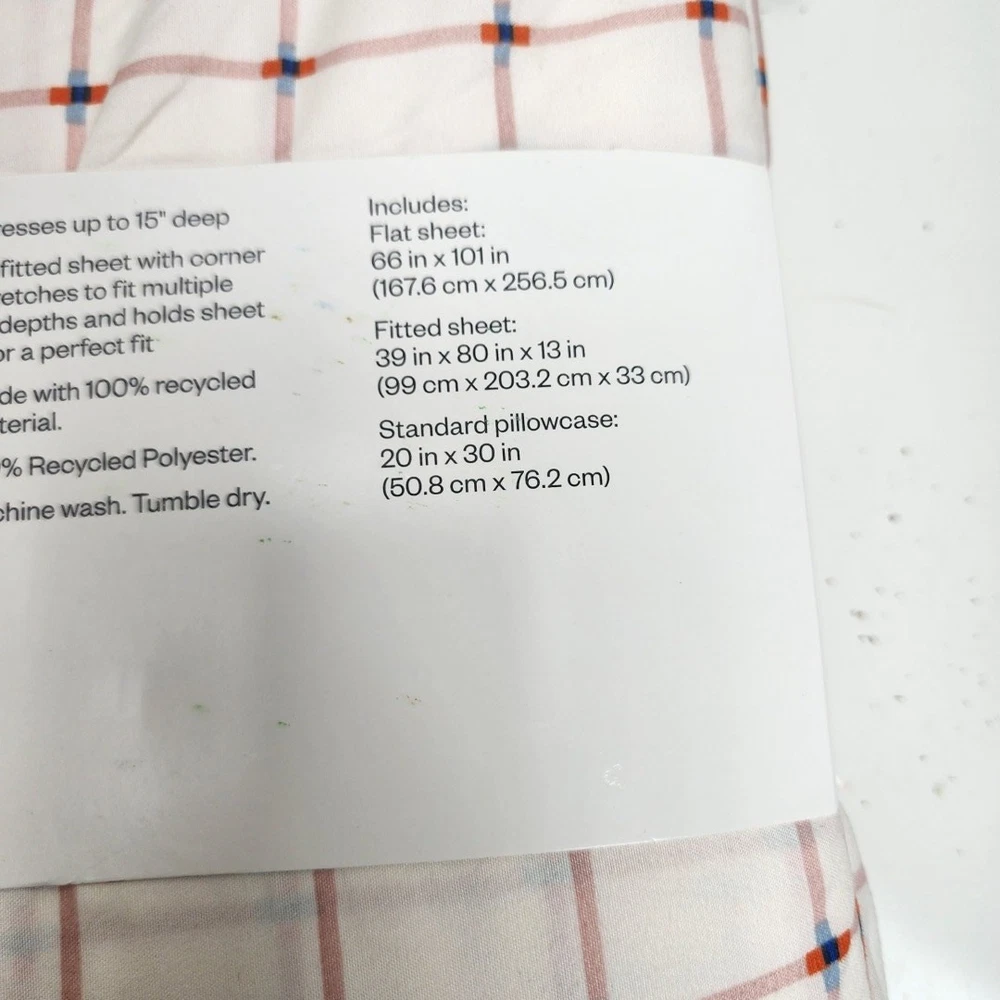 Target Room Essentials Microfiber Pink Grid Twin XL Sheet Set * BRAND: Target / Room Essentials * COLOR: White / Pink Grid * MATERIAL: Microfiber * SIZE: flat 66"x101" / fitted 39"x80"x13" / pillowcase 20"x30" * CONDITION: Brand New Sealed. See Images for Specifics! Pre-Owned / Used: A product that has been used previously. View our listing for full details in our description and check out our photos provided. If there are any imperfections, it will be noted in the description and/or within the provided photos. All items we sell come from auctions or estate sales. Buyer Discretion! We appreciate you looking at our listing. Before placing an order, feel free to ask any questions you may have about this item. Upon receiving your order, if you are not satisfied with your order, please contact us and we will address any issue.