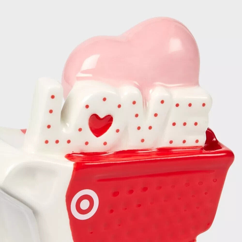 Ceramic Target Bullseye Dog Figurine with Heart Cart | Valentine's Day Decor Description: Celebrate Valentine's Day with this charming Ceramic Target Bullseye Dog figurine from Spritz™. Featuring the iconic Bullseye dog pulling a heart-filled cart, this adorable decoration adds a festive touch to any space. Made from sturdy ceramic, it’s perfect for home decor or as a thoughtful gift for a loved one. This figurine brings a playful and heartwarming vibe to Valentine's Day decor. Its iconic design and festive details make it an irresistible addition to any space or a delightful gift for someone you care about. Features: Adorable Design: Features the Target Bullseye dog with a heart-filled cart. Valentine’s Day Ready: Perfect for adding festive charm to your home or gifting to someone special. Sturdy Construction: Made from durable ceramic for long-lasting use. Secure Display: Stands securely on flat surfaces, making it easy to showcase anywhere. Charming Accent: Adds a whimsical, festive touch to mantels, shelves, or tables.