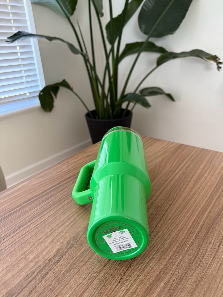 The product is a 40oz Pearl Green Starbucks X Stanley reusable cup, featuring original advertising for the brand. The theme of the cup revolves around coffee and tea, making it a perfect choice for coffee enthusiasts. The green color adds a touch of eco-friendly vibes to the design, making it a stylish and sustainable choice for on-the-go beverages.