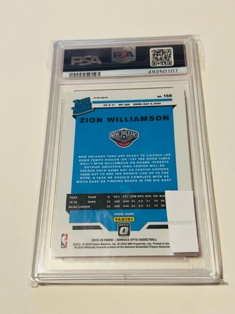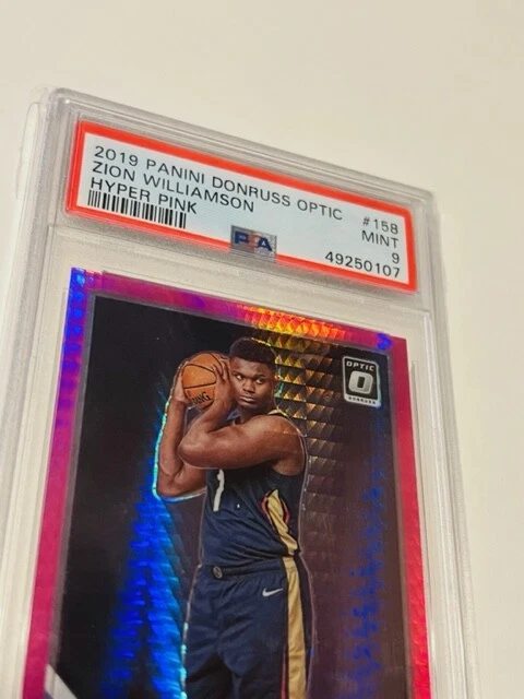 Absolutely awesome and highly collectible 2019-20 Donruss Optic HYPER PINK short print Zion Williamson True Rookie Graded a PSA 9 MINT! See all pictures for amazing condition, size, and detail. There are absolutely no returns on graded sports cards as you know exactly what you are getting because it is professionally graded and the market for sports cards changes literally on a daily basis. Check out my store for some of the rarest vintage collectibles online from all eras. Thanks for looking and have a great day! :)