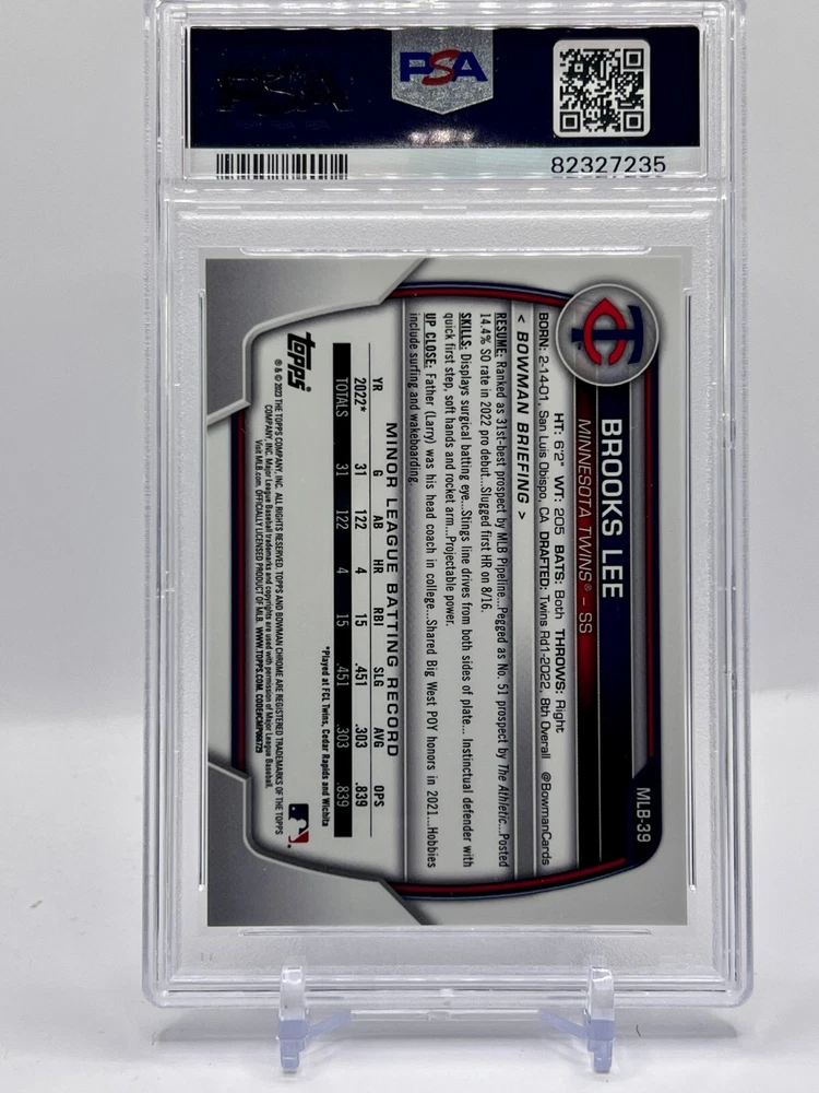 2023 Bowman Chrome Sparkle Brooks Lee Nations Sports Card Convention PSA 9 Mint #'ed /99. One of the hottest prospects of 2024! You are buying the card shown in the photo, and any "defects", or details about the card will be listed above below the original description. If you are buying from an auction, you will have 48 hours to pay. If it is a BUY IT NOW listing, payment is required immediately. Item will ship via a standard eBay envelope if shipping is listed for a $1.49 flat fee or $4.99 flat fee (USPS GROUND ADVANTAGE, unless noted otherwise). I will offer shipping discounts via refund on multiple items and adjust shipping method accordingly. Items typically are shipped 1-3 business days after sale is completed. Buyer will receive feedback after feedback is left for me. Items are non returnable. Thanks for checking out my items. Please follow.