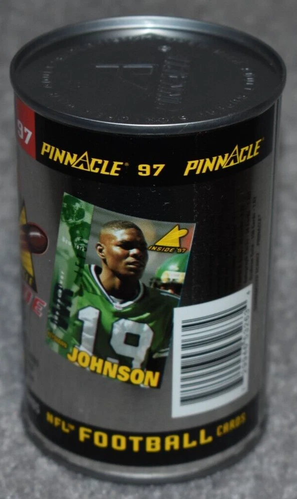 THIS IS A LISTING FOR 1997 PINNACLE INSIDE CARDS IN A CAN. CONTAINS 1 PACK OF CARDS WITH TEN CARDS IN THE PACK. THE CAN PICTURES NEW YORK JETS KEYSHAWN JOHNSON. IT IS NOT OPENED. IT MAY/HAS SLIGHT MARK/MARKS ON TOP/SIDES OF THE CAN AS PICTURE SHOWS. IF YOU HAVE ANY QUESTIONS PLEASE CONTACT ME BEFORE PURCHASEING THE ITEM. GREAT COLLECTORS ITEM. I ACCEPT EBAY ONLINE PAYMENTS AND PAYPAL. MOST ORDERS ARE SHIPPED IN ONE BUSINESS DAY. THANKS FOR LOOKING AND HAVE A GREAT DAY. On Sep-18-02 at 02:56:00 PDT, seller added the following information: After purchasing, pay instantly with your credit card through PayPal!