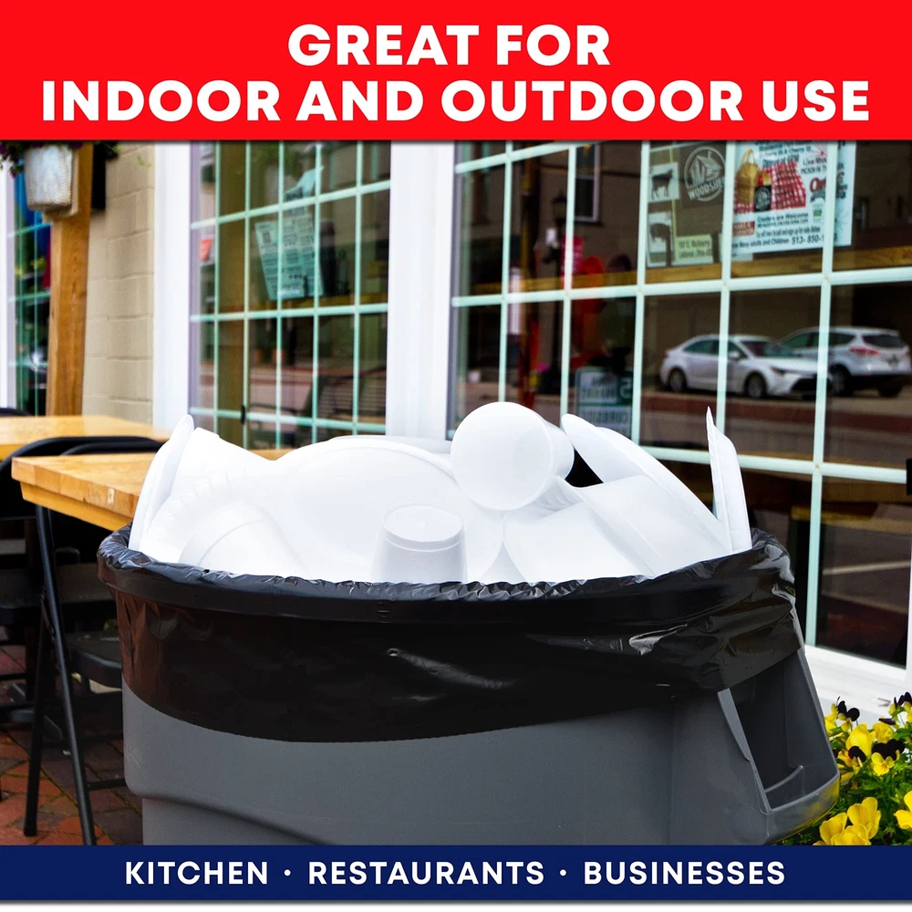 Are you tired of fussing around with those flimsy trash bags, which easily puncture and rip only to leave behind a mess? If so, these Black trash bags by Tasker are the perfect solution for you! They're big, they're strong and they can be used both indoors in the kitchen, garage and outdoors for organizing, cleaning up, or landscaping. Use them to rake up leaves, gather branches in the yard or in large capacity trash cans. In order to ensure they can withstand even the toughest jobs around the home, our 55 gallon Black trash bags are made in the USA out of a premium quality thick Black plastic. What more could you ask for from a heavy duty trash bag? 55 gallon trash bags - these drum liners are puncture resistant, flexible, and strong enough for indoor and outside use. Thickness 1.5 mil Large black trash bags, durable martial the tear and puncture-resistant plastic is both thick and able to stretch, making it ideal for accommodating all of your clean-up and storage needs. Dimensions. 37"W x 55"H. Thick, strong, puncture-proof and ready to haul even the heaviest loads of rough debris. Tear and leak-resistant garbage bags which makes it perfect for construction sites, workshops, or backyard use. 55-60 gal heavy duty capacity - These heavy duty trash bags are designed to hold more garbage and accommodate large volumes of waste, which means less bags used and fewer trips to the dumpster. Contractor bags perfect for job sites, construction, and yard waste bags.55-60 gal heavy duty capacity - These heavy duty trash bags are designed to hold more garbage and accommodate large volumes of waste, which means less bags used and fewer trips to the dumpster. Contractor bags perfect for job sites, construction, and yard waste bags.