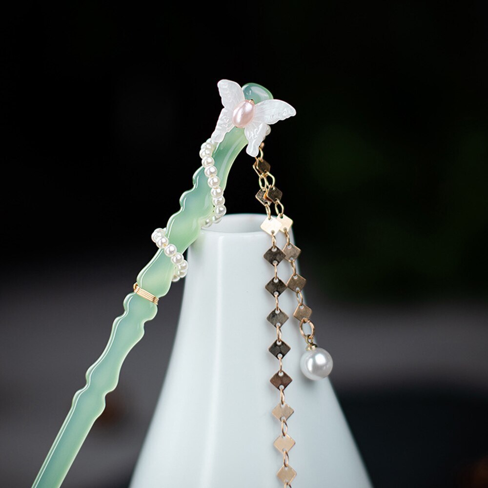 Description: 1. Workmanship: The duct adopts high-quality manufacturing cess, which can effectively prevent the duct from fading and increase the gloss and wear resistance of the duct. 2. Woman Hair Stick: The bamboo shape tassel hairpin shows beautiful and temperament through novel design and exquisite workmanship, attracting everyone's attention and becoming a shining bride and tagonist. 3. Retro Design: The hair stick design is easy to remove and holds the hair firmly, long-term stability, won't hurt you or mess up your hairstyle. 4. Occasions: Beautiful hair sticks are the perfect gift for friends and loved ones on Christmas, Birthday, Valentine's Day and other occasions. 5. After-sale Service: If you have any questions, please contact us immediately and we will help you solve it as soon as possible. Specifications: Length: 18cm Material: Acetic Acid Ranges of Application: Weddings, parties, anniversaries, dance, performances, birthday parties, photography or other time. Notice: 1. Due to different monitors and lighting effects, the actual color may be slightly different from the image 2. Due to manual measurement, please allow 1-3cm deviation Package Includes: 1 * Hair Stick