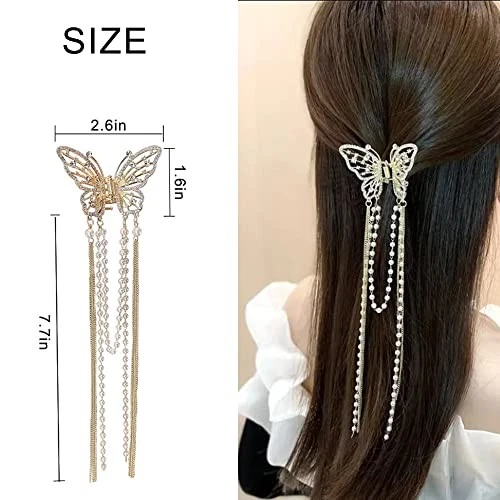 Return Policy Fast Delivery Trusted seller Hair Clip with Tassel Crystal Rhinestone Gold Nonslip Butterfly Hair Claws Metal Butterfly Pearl Accessories for Women Girls Thick Thin Hair Product Description Material: Butterfly tassel hair claws are made of metal with gold plating and polish surface; These hair clips is reliable, no rust and fade, not hurt your hair, fitting long time to use Package: Butterfly approximately in 2.6x1.6inch, the tassel approximately in 7.67inch; Gold colors of claw clips which can match different style of clothing Unique Design: Metal hair clips are butterfly shape, texture and luster; It will holds your hair well and look more delicate and elegant; Not only to fix hair styling, but also as a daily makeup accessories Wide Application: Tassel hair grip clip are suitable for straight hair, curly, wavy hair, thin hair, medium-thick hair, thick hair, long hair and short hair; Great for wedding, birthday, prom, work school , photograph, graduation ceremony, etc Elegant and Fashionable: Gold hair pins great for your mother, wife, daughter or female friend; They will be happy to receive such delicate and stylish hair claws Shipping Returns Payment Shipping Shipping is FREE to all addresses other than APO/PO boxes in the lower 48 states. All our stock ships from US-based warehouses. Shipped via USPS or UPS (depending on location and package weight) Unless stated otherwise, all orders will ship within 24-72 hours of your payment being processed. Check our feedback to see the great reviews of FAST shipping we offer. Returns Seller does not accept returns Payment We currently accept payment via eBay managed payments only. Once payment is cleared, we will dispatch your shipment within 1-3 business days. Please refer to the "Shipping" tab for more information regarding shipping speed to your destination.