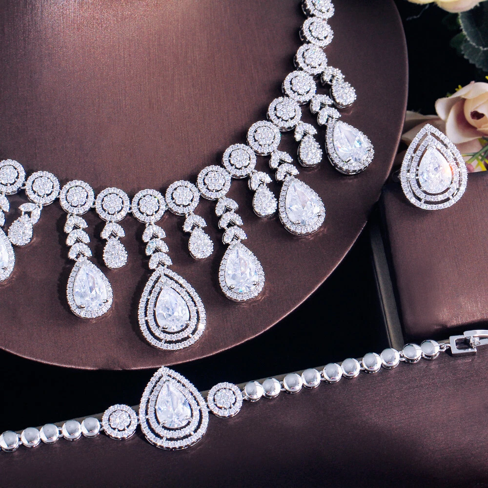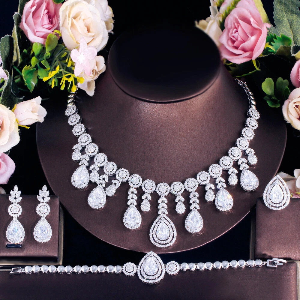 Tassel Drop Necklace Earrings Women Silver Plated CZ Bracelet Ring Jewelry Set Specifications : Condition:New Necklace Length : 44 cm Earring Size : 4 cm Bracelet Size: 18.5 cm Ring Size: Adjustale Material : Cubic Zirconia Features : 1. 100% Brand New and high quality. 2. Luxury and Gorgeous design, you deserve it 3. Brillant Simulated Diamond - Top Level Cubic Zirconia. Enjoy the Dazzling Sparkle from Cubic Zirconia. 4. Our Fashion Necklace and Earrings sets are perfect gift for Women , Brides , Mother , Girls . 5. Perfect for Various Occasions: Ideal for Bridal, Wedding, Prom, Pageant, Bridesmaids, Parties, Proms, Homecoming, Black Tie Formal Affairs, Holidays, Special Occasions, Birthday, Valentine's Day, Mother's Day or Anniversary Gifts. Package Includes: 1Pc Necklace 1Pair of Earrings 1Pc Ring 1Pc Bracelet Payment Delivery details Terms of sales & Feedbacks About us & Contact us Our commitment Payment 1. We only ship item to your Ebay verified address . Please Make sure all address are the same 2.Please leave note in ebay when making the payment if you have any special request (colors/size). Delivery details We only send items to the registered eBay address.Items will be shipped within 2 business days from the date payment is received (not include public holiday and weekend) . As per eBay regulations, import duties, taxes, and customs charges are the buyer's responsibility. Please check with your country's customs office to determine what these additional costs may be prior to bidding or buying. Terms of sales & Feedbacks After-Sale Please contact us to request a return/replace/refund authorization .It will be best if you use ebay message to contact me. 1, Return and replacement request is available only the requests within 30 days after parcel received. 2, Returning the item as the same condition as received. Situation and solution Defectives ---Please contact us and provide a photo of the defective part. After situation confirmed,we will offer you refund/return/replacement according to the situation Not as Described ---Please contact us and provide a photo of the wrong part. After situation confirmed,we will offer you refund/return/replacement according to the situation Not Received ---Please undersatnding shipping on the way was out of our control ,because of the busy shipping season,holidays,bad weather or force majeure etc. It may be delay for days. But if it took too much time and not deliveried, Please message me, I will offer you solution for it. Feedbacks 1. If you are satisfied with our service, please leave us a + Good feedback and rate the details of the transaction (DSR) with a. . When you rate the shipping time part please take international transit into consideration.] Your recognition will make us more confident to develop business and serve you better. 2. Please contact us first if you have any problem with the items,we will solve it in time ! 3. Please do not leave Neutral or Negative Feedback before you contact us, Thanks For Your Business ! About us & Contact us Working time: Chinese time(Eastern eight zones):Monday to Friday ,9:00 am to 6:00 pm. We do not work on chinese legal holiday. Message reply: We will reply all messages within 24 hours of business time. Please contact us via ebay message, it was the best way for both you and us to solve problems. Any questions or anything you need, please feel free to contact us. Our commitment 1.Wholesale price will be offered to you if you need in bulk ! 2.About Size