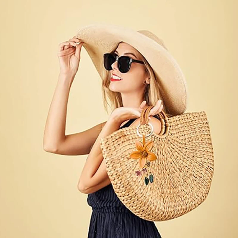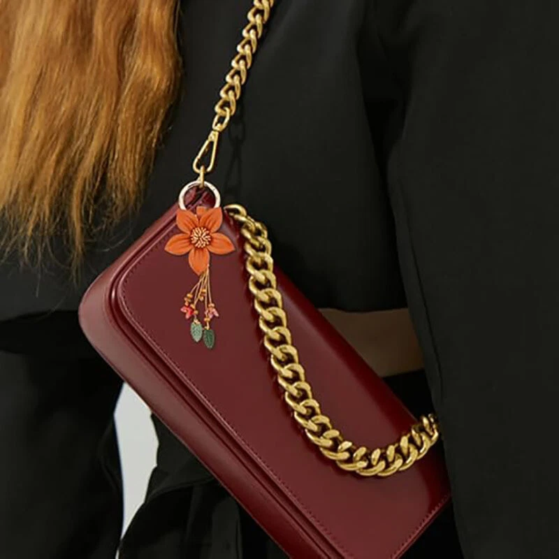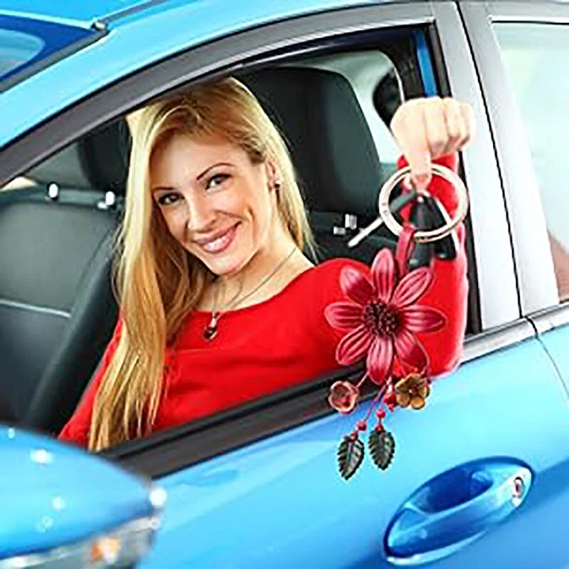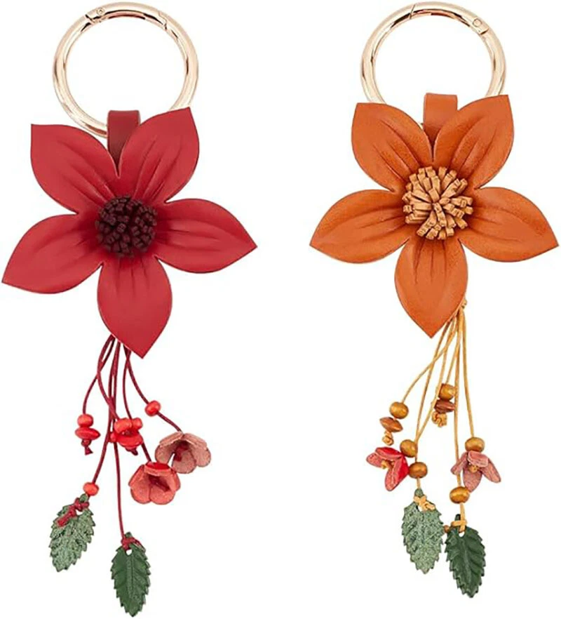 Tassel Key Chain Leather Wallet Car Ring Handbag Ornaments Women's Key Flower