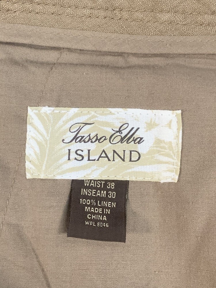 Tasso Elba Island Pants Men's 38x29 100% Linen Flat Front Brown Trousers. Condition is Pre-owned. Shipped with USPS Ground Advantage.