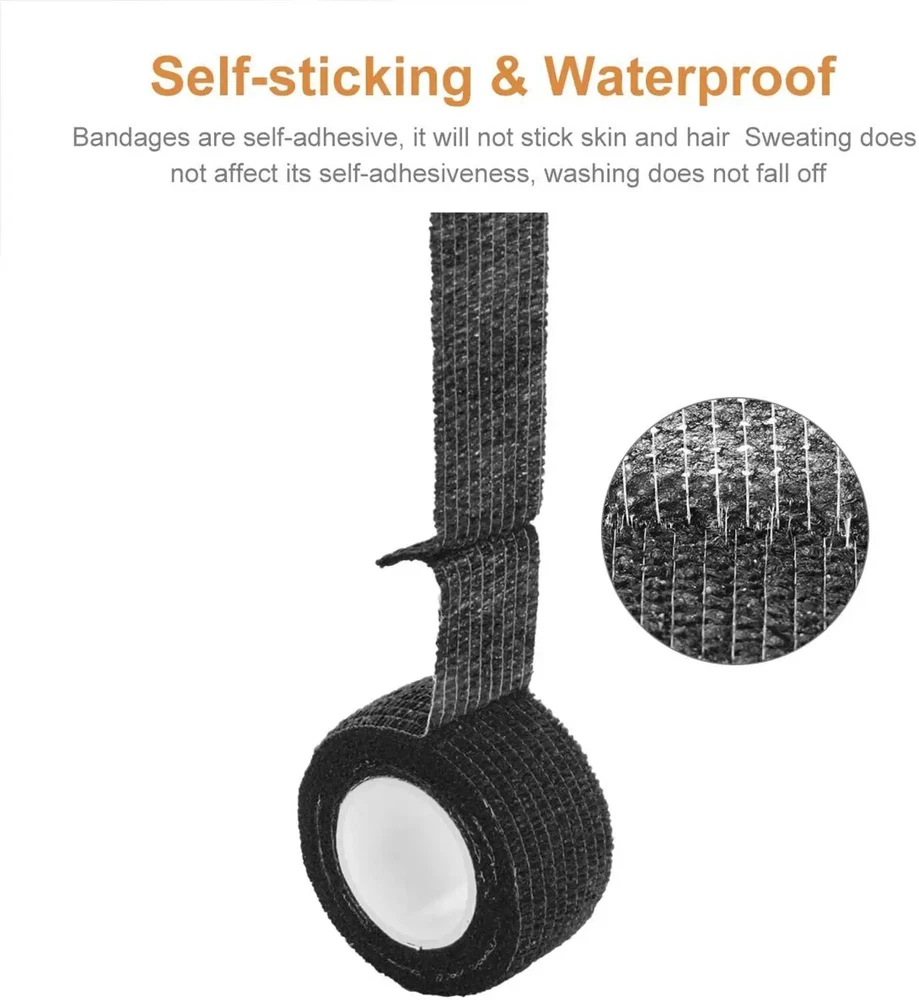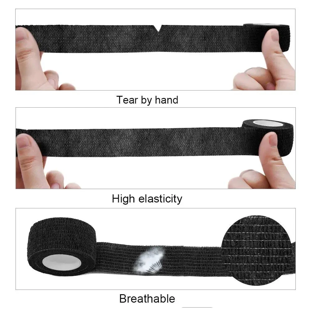 96/12PCS Tattoo Grip Cover Bandage Wraps Tapes Disposable self-adhesive Finger Wrist Protection For Tattoo Grip Accessories Description: Color:Black Material:Non-woven Fabric Width: 2.5CM Length: 4.5M Use for: Tattoo Grip Quantity: 12/24/48/96pcs Features: 1. Tattoo grip tape can be wrapped around the handle grip of tattoo machine. 2. Help to prevent handle slip and create perfect tattoo artwork. 3. The tattoo bandage wrap is made of special elastic fabric,soft,not slip ,shock absorbent. 4. Flexible, Tear easily by hand for desired length.No need to use scissors. 5. Disposable, self-adhesive design. Clean and sanitary safety. 6. Highly recommended the tattoo grip tape wrap for every tattoo amateur and professional. 7. Suitable for: Tattoo machine grip tubes;Sports protection; Body parts; Pets ect. Hope you have a good shopping experience in our shop, *_* thanks
