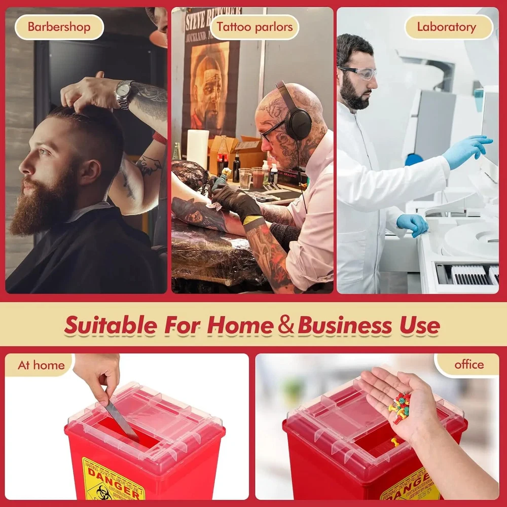Specification: Material: Plastic Color: Yellow, Red, Black Size: about 105*150mm Capacity: 1L Uses: Can collect tattoo needles, injection needles, disposable needles and other items Description: Suitable for handling sharps containing medicines and their residues. Not suitable for products contaminated by cytotoxins. Can be in your pocket, glove box and much more. For tattoo enthusiasts to create a safe and healthy environment. Package include: 1 X Needle Recycling Bucket Note: Please allow slight dimension difference due to different manual measurement. Please note that slight color difference should be acceptable due to the light and screen.