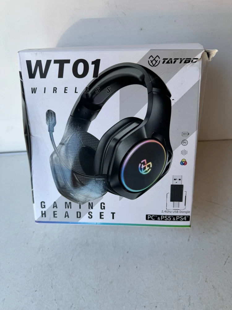 Tatybo WT01 Gaming Headset Wireless Black Noise Canceling Microphone for PS5 PS4 Description Tatybo WT01 Gaming Headset Wireless Black Noise Canceling Microphone for PS5 PS4 . Product Detail • Brand : Tatybo • Model : Tatybo WT01 • Color: Black • Type : Headset Please message me if you have any questions.