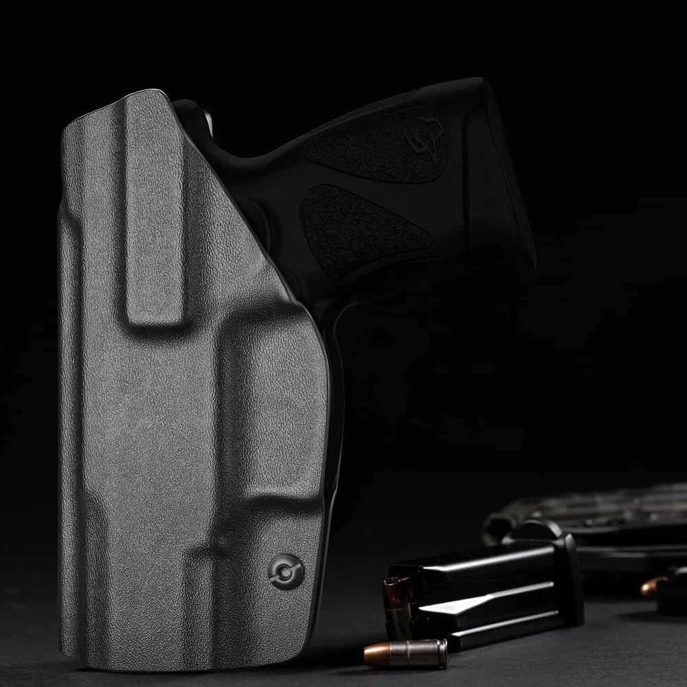 IWB Kydex Holster Custom for Taurus G3C/G2C pistols - 【Not fit any laser/light attachments】 Perfectly fits Taurus G3C / G2C / Millennium PT111 G2 / PT140 9mm IWB KYDEX holster for every day concealed carry. Comfortable enough for everyday use and very easy to hide no matter how you are dressed. ✈Carry Position Appendix Carry (AIWB), Hip Carry, Back Carry, Cross Draw. ✈Taurus G3C Holsters, US KYDEX&Design By using sturdy 0.8" Kydex material, it is lightweight, sturdy, durable, sweat-proof, waterproof and washable,providing comfort and confidence in any situation. Help you avoid accident. ✈Posi-Click Audible Retention Lock System, Fits Like Glove Holster for G3C / G2C possess Posi-Click Audible Retention Lock system, you would hear a "click" sound when your is firmly seated. ✈Full Cover Trigger, No Scratch, No Jitter The kydex Taurus G2C Holsters full covering all access to the trigger, which can avoid all possible accidents. All edges are polished and smooth designed be exceptional consistency and accuracy. Smooth inside instructure can avoid scratching your love handgun. ✈Durable Clip, Adjustable Cant Belt clip is suitable for 1.5’’ belt, with hook in buttom, it stick firmly in your belt whendrawing and holding. The Carry Angle (Cant) can adjust from -5° to 20° ✈Adjustable Retention Tension tightness is also adjustable, use phillips screwdriver to reach your ideal retention pressure. ✈Policy We offer a , if for any reason you are unsatisfied, please feel free to our 24/7 Customer Services for or a full of your purchase price, we stand behind the quality of our work! 【Taurus G3C Holster, US KYDEX&Design】 Custom for Taurus G3C / G2C / Millennium PT111 G2 / PT140 9mm /.40 , US KYEDEX made comfortable and durable. Inside waistband concealed carry holster, preserve your Taurus G3C/G2C handgun in perfect condition. (Note: Doesn't fit with laser/light attachments) 【Full Cover Trigger, No Scratch, No Jitter】 The holsters for G3C Taurus full covering all access to the trigger, which can avoid all possible accidents. All edges are polished and smooth designed be exceptional consistency and accuracy. Smooth inside instructure can avoid scratching your love handgun 【Posi-Click Audible Retention Lock System, Fits Like A Glove】 The G3C Taurus Holsters possess Posi-Click Audible Retention Lock system, you would hear a "click" sound when your is firmly seated 【1.5’’ Belt Fit Perfect】 Taurus G2C / G3C Holsters belt clip is suitable for 1.5’’ belt, with hook in buttom, it stick firmly in your belt when drawing and holding 【Adjustable Cant】 The Carry Angle (Cant) can adjust from -5° to 20°, use phillips screwdriver to customize the CANT to meet your need 【Adjustable Retention Pressure】 Retension tightness is also adjustable, use phillips screwdriver to reach your ideal retention pressure 【】 We offer a , if for any reason you are unsatisfied, please feel free to our 24/7 Customer Services, we stand behind the quality of our work! 【Please Noted】 We have Left Hand Draw(IWB) and Right Hand Draw(IWB) Options, Choose Left Hand Draw(IWB) you will get holster for left hand draw, Choose Right Hand Draw(IWB) you will get holster for right hand draw. If you can't find, it means that (right or left) out of stock, and will come back soon.
