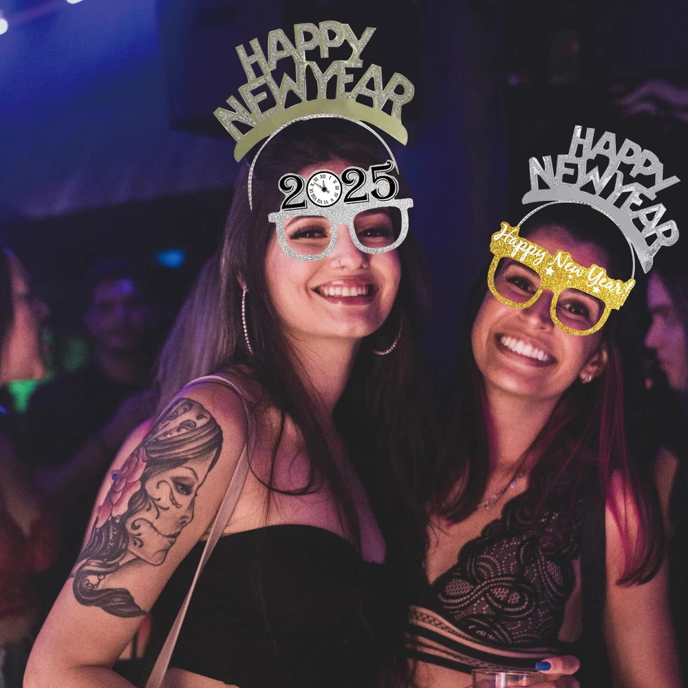 【Packaging Included】You will get 36 pieces of new year eve party supplies,including 12 noise makers party favors in gold and grey, 12 happy New Year headbands in 3 different colors(each color has 4 pieces),12 New Year party glasses. 【New Years Eve Party Supplies】These New Year party headbands,2025 party eyeglasses and noisemakers, with their cute and sophisticated appearance, are great accessories for New Year parties, and you can use them as photo props to take meaningful photos with your family and friends to record precious moments. 【Happy New Year Glitter Design】This Happy New Year headband,glasses is made of aluminum foil paper, has a certain thickness, not easy to deformation, light weight, can be easily worn, designed with the glitter words Happy New Year, is a good New Years Eve gifts for children or friends.Suitable for children and adults. 【Safe to Use】Our happy New Year headbands and glasses are made of quality cardboard paper, stable and not easy to deform, comfortable to wear.Flashing metal tassel noise maker is made of high quality plastic, safe and non-, not easy to break, high quality can be used for a long time. Make a cheerful sound at your upcoming 2025 New Year's Eve party or Christmas party. 【Service】You have any pre-sales and after-sales problems, please us, we will solve the problem for you within 24 hours.