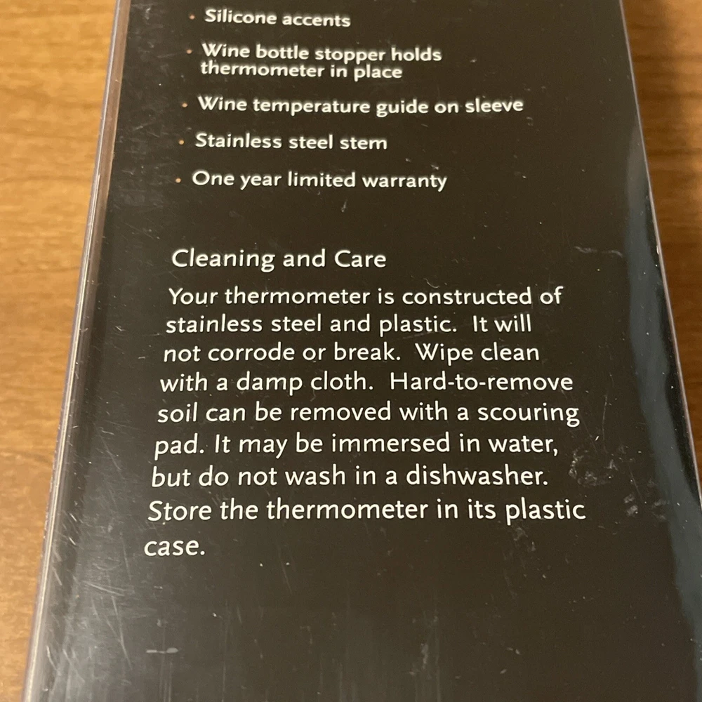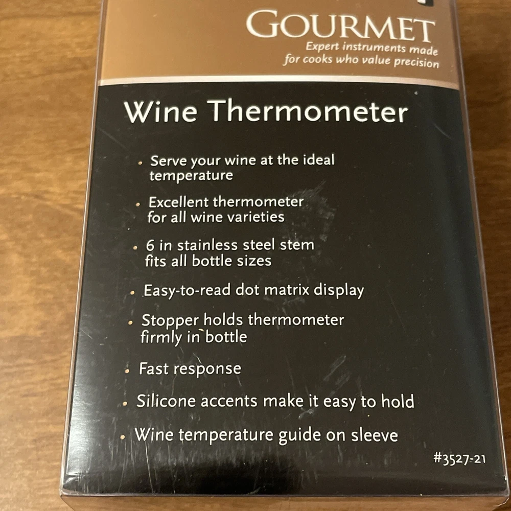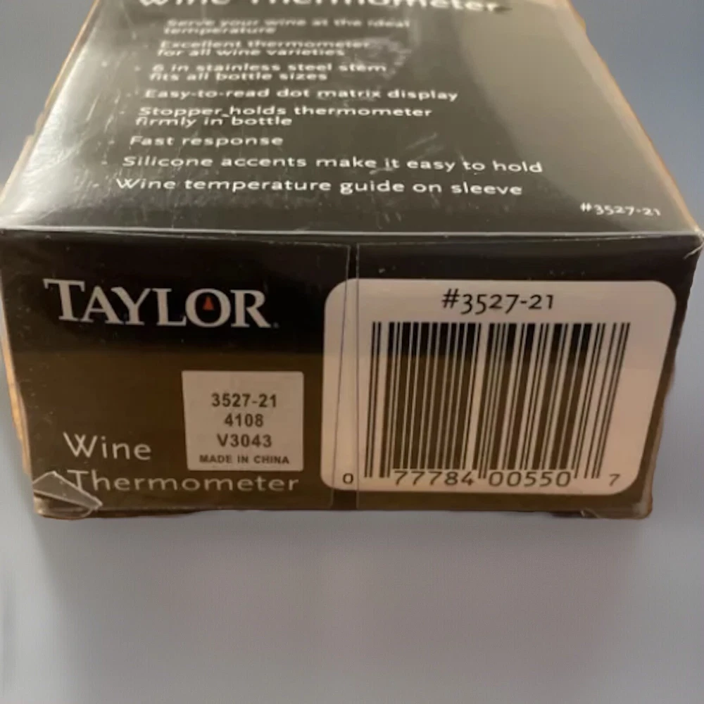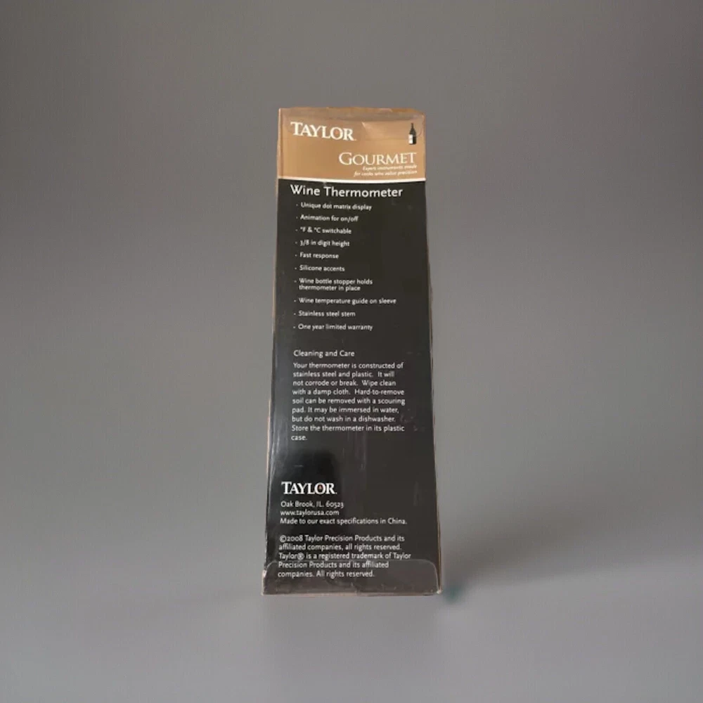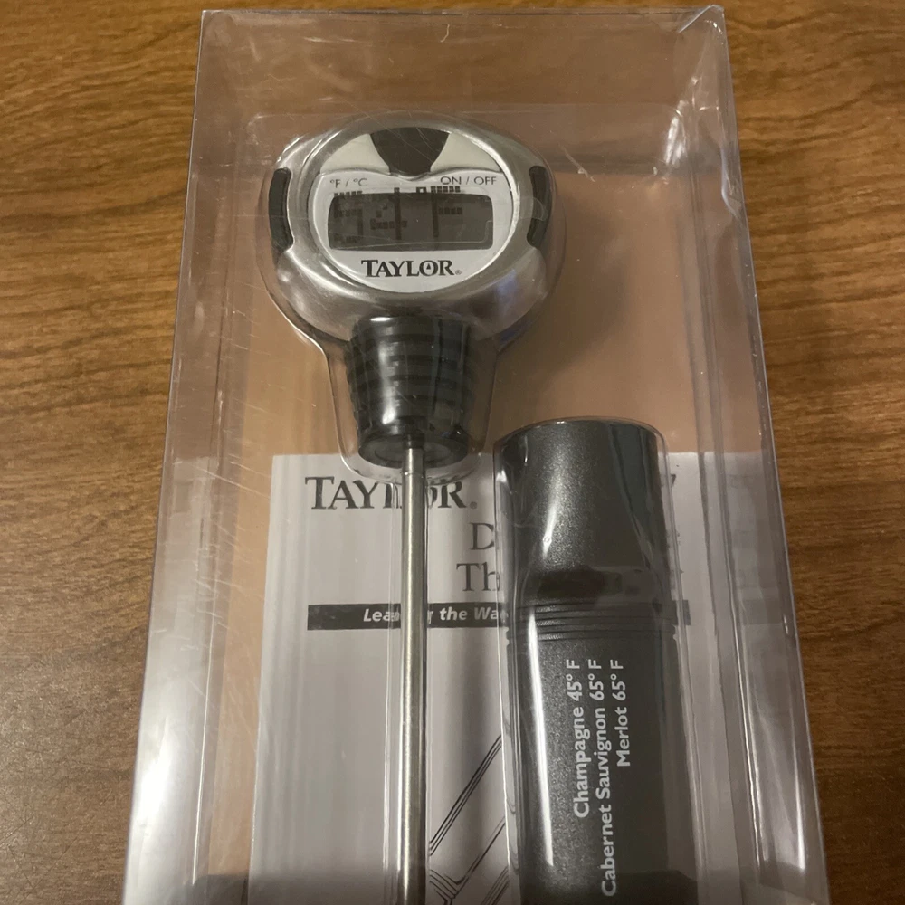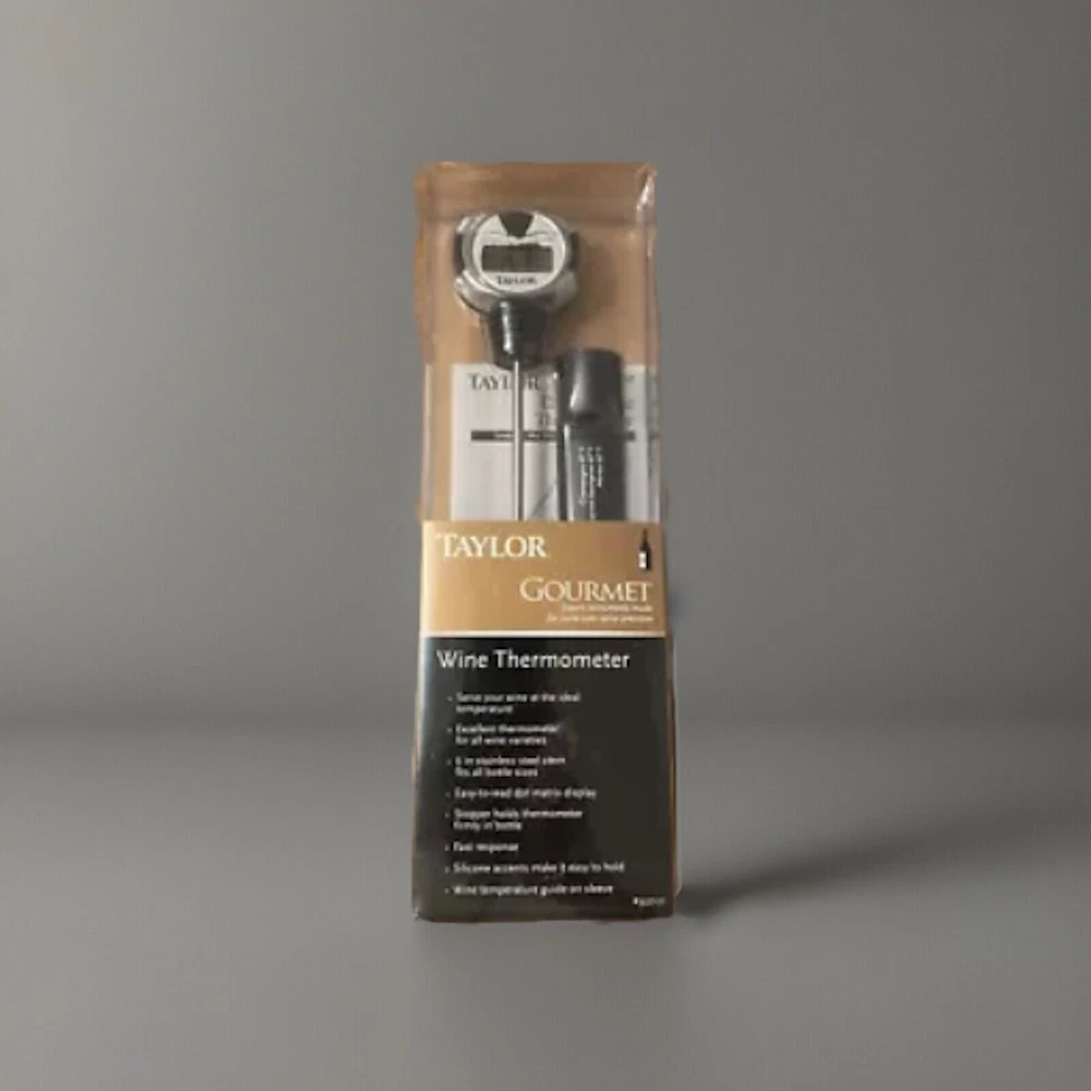 Elevate your wine-drinking experience with the Taylor Gourmet Connoisseur Series Wine Thermometer. Crafted from high-quality stainless steel and featuring a sleek silver design, this digital wine thermometer is as stylish as it is functional. Its washable design ensures easy cleaning, making it a practical addition to any home bar or kitchen. With a range of -50 to 100 degrees Fahrenheit, this wine thermometer accurately measures the temperature of your wine, ensuring it is always served at the perfect temperature. Its digital display provides easy reading, and its compact size makes it easy to store. Whether you are a wine enthusiast or simply looking for a high-quality wine thermometer, the Taylor Gourmet Connoisseur Series Wine Thermometer is an excellent choice.