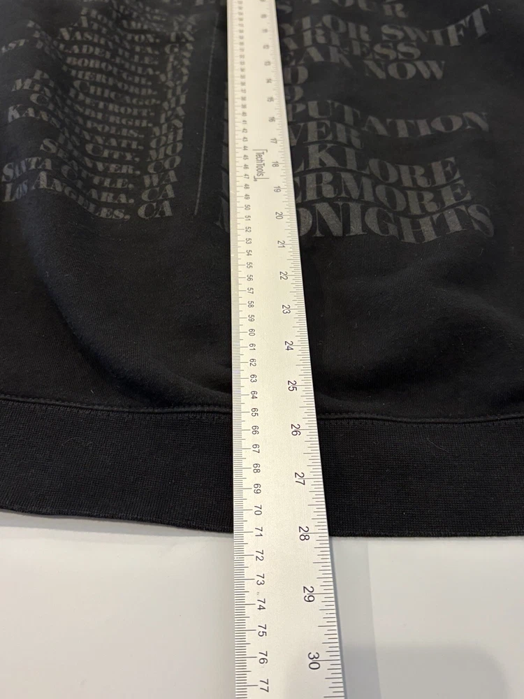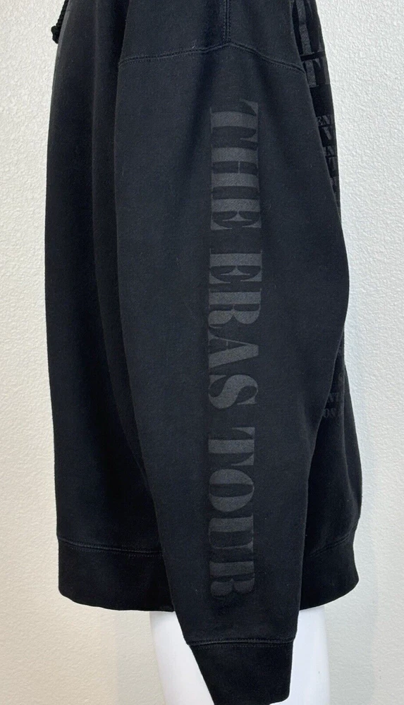 Taylor Swift The Eras Tour Concert Merch Hoodie Adult 2XL Black Limited Edition. US Tour dates on back of hoodie, photos on front and Eras Tour going down arms. Perfect for any Swiftie fan! In excellent pre-owned condition-no flaws. Please see photos for measurements and condition. Features: • Style Profile: Swiftie, Concert memorabilia, Pop, Celebrity, Stars, Music • Hoodie with Kangaroo pouch • Machine Washable Measurements: - Previous washings may change the sizing written on the tag. - Please refer to the photos above for all measurements. - Please compare our measurements to that of one of your favorite garments. - Please note, item measurements are approximate . - Colors may differ slightly in shade from photos to actual item due variances caused by photography lighting and monitors. All items are bagged and sealed after being photographed, then stored in a smoke free environment to ensure the item is exactly the same as when photographed. We always carefully package and ship ASAP. Feel free to contact us with any questions. All items are washed per eBay standards and policies. We greatly appreciate your business! Please remember to leave positive feedback if you are happy with your purchase! Thanks for looking!