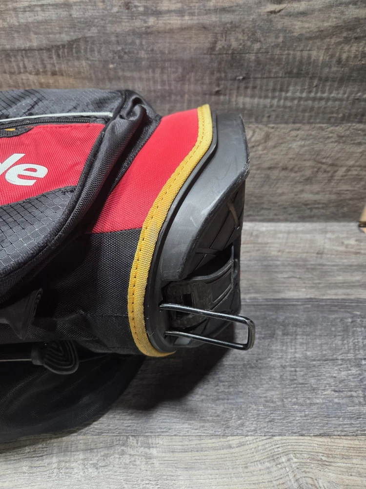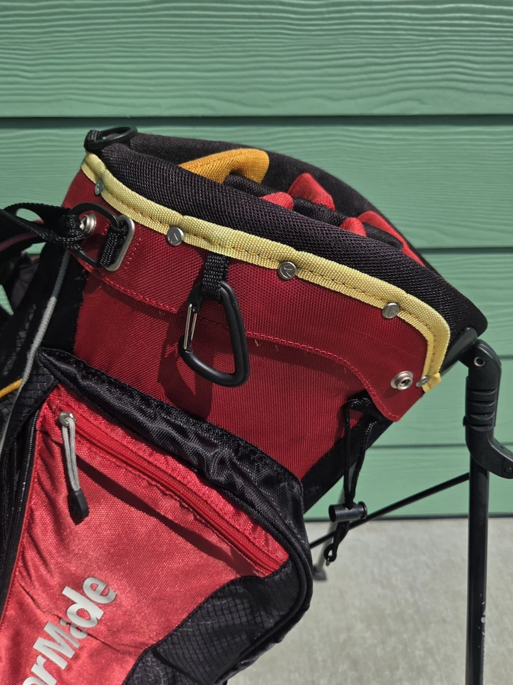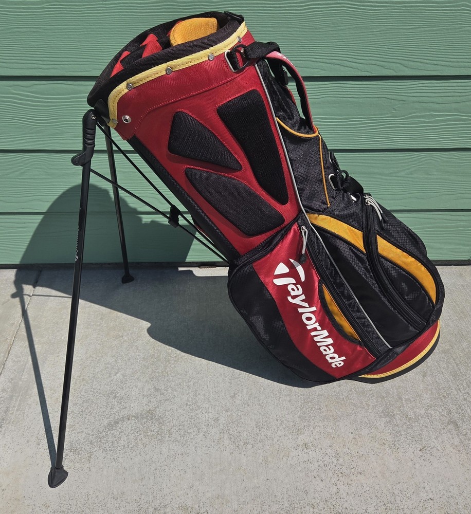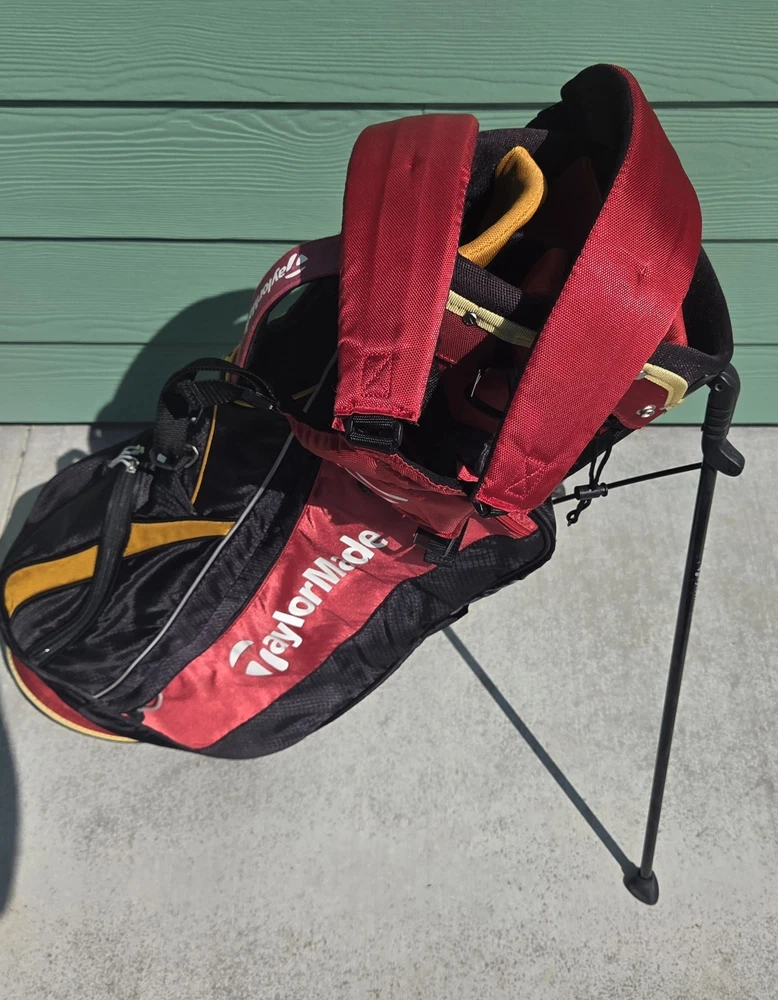 This TaylorMade golf bag is in great used shape with minor wear. Very slight fading on the handle. All zippers function properly. Stand/legs function properly as well. No holes or rips in this bag. Please feel free to reach out with any questions. Thank you.