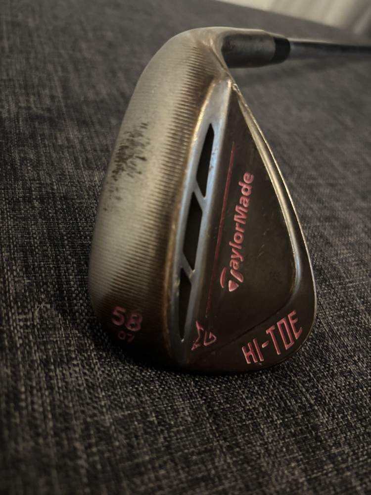 For sale is a TaylorMade Hi-Toe 58° wedge, owned by a PGA Professional. This club has been used but remains in solid playing condition, with typical wear on the face and sole. The grooves still have life left in them, making it a great choice for players looking for maximum spin and versatility around the greens. Key Details: Model: TaylorMade Hi-Toe 58° (07 Bounce) Shaft: KBS Rev 2.0 120 Steel Grip: JumboMax Ultralite (used but in good condition) Condition: Shows visible wear from play, but grooves remain playable Ownership: Previously owned by a PGA Professional This wedge is designed for players who want enhanced spin, versatility in different lies, and extra forgiveness in their short game. The Hi-Toe design provides optimal performance for bunker shots, flop shots, and tight lies.