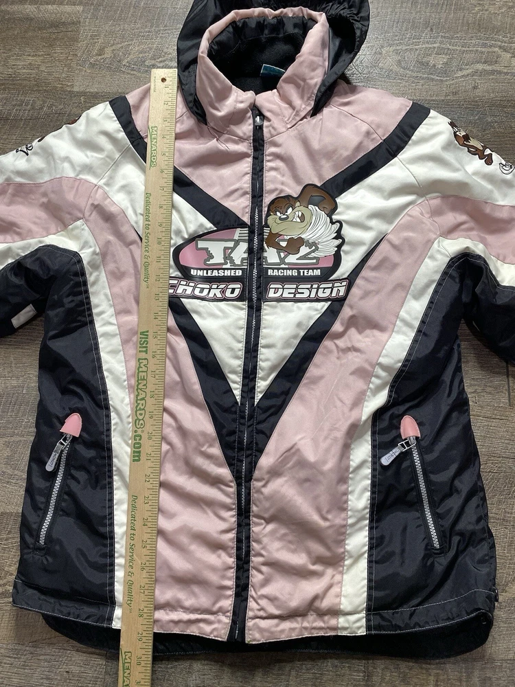 Nice condition coat that works great. All of the zippers work well. The cuff link Velcro straps need new Velcro and a logo is slightly coming off on one edge. There are a few light marks here and there but otherwise very nice clean shape. No rips or tears. Smoke free home. See pictures for rough measurements. I will package well and ship right away. Thank you!