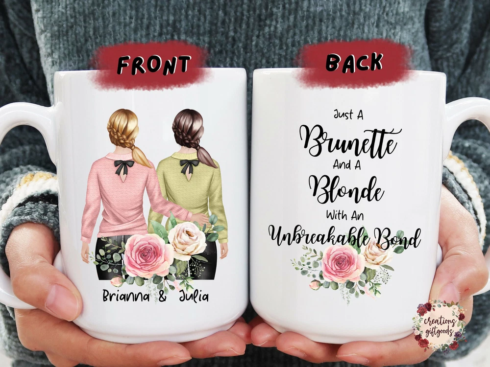 Custom Best Friend Mug Personalized Best Friend Gift Custom Girls Mug Long Product Details.. This high quality 11oz. ceramic white mug has a premium hard coat that provides crisp and vibrant color reproduction sure to last for years. Perfect for all hot & cold beverages. The highest quality printing possible is used. It will never fade no matter how many times you wash it. Material: 100% Ceramic. Print both sides. Dishwasher and Microwave Safe. High Gloss + Premium White Finish. Printed in the U.S.A. Personalized & Custom. We support personalized and custom mug to add custom, when placing an order, you can add notes to the "order note" in shipping address section. Also you can contact us directly via message. Shipping Info. Ready to ship in 1 to 2 business days, All products are made-to-order and proudly printed in the United States. Shipped by USPS and DHL, You will receive your order in 5-7 days. Replace & Refund. All products are defective during shipping broken, chipped will be replaced free of charge. You are not satisfied with the product, we will refund 100% money to you. If any other issues arise, please do not hesitate to message, we would be more than happy to assist you.