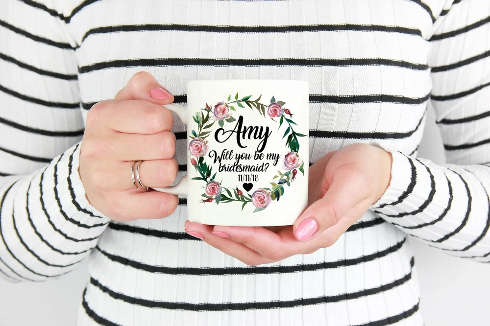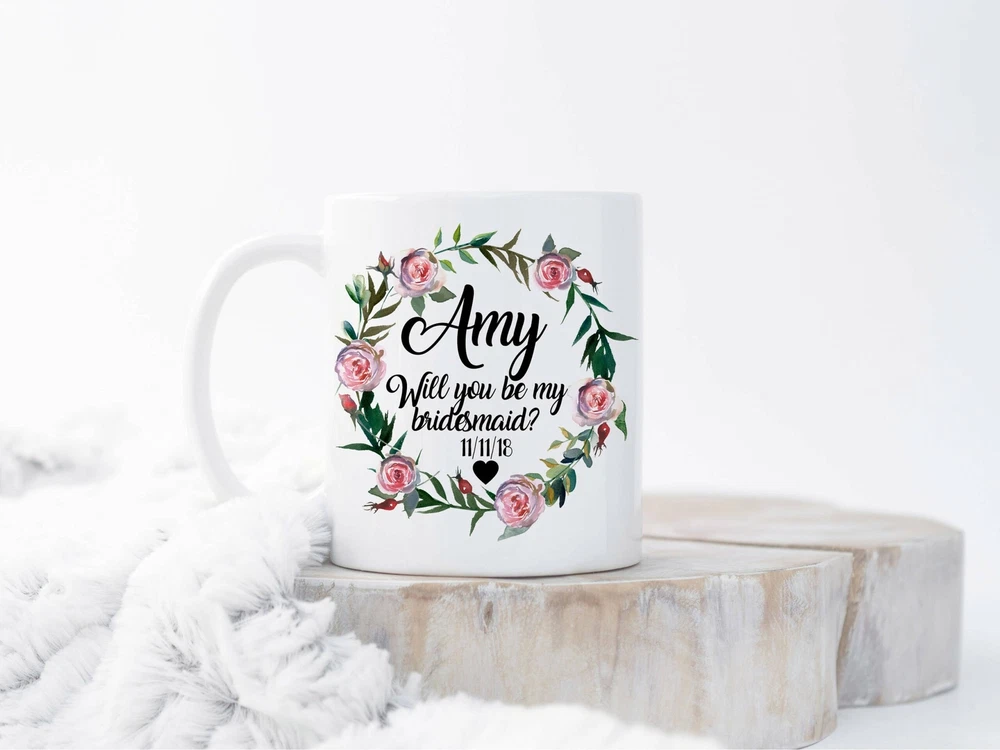 Personalized Mug Bridesmaid Proposal Mug For Bridesmaid Custom Name Mug Product Details.. This high quality 11oz. ceramic white mug has a premium hard coat that provides crisp and vibrant color reproduction sure to last for years. Perfect for all hot & cold beverages. The highest quality printing possible is used. It will never fade no matter how many times you wash it. Material: 100% Ceramic. Print both sides. Dishwasher and Microwave Safe. High Gloss + Premium White Finish. Printed in the U.S.A. Personalized & Custom. We support personalized and custom mug to add custom, when placing an order, you can add notes to the "order note" in shipping address section. Also you can contact us directly via message. Shipping Info. Ready to ship in 1 to 2 business days, All products are made-to-order and proudly printed in the United States. Shipped by USPS and DHL, You will receive your order in 5-7 days. Replace & Refund. All products are defective during shipping broken, chipped will be replaced free of charge. You are not satisfied with the product, we will refund 100% money to you. If any other issues arise, please do not hesitate to message, we would be more than happy to assist you.