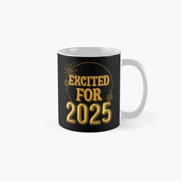Taza clásica camiseta regalo año nuevo divertida emocionada para 2025, regalo para familia