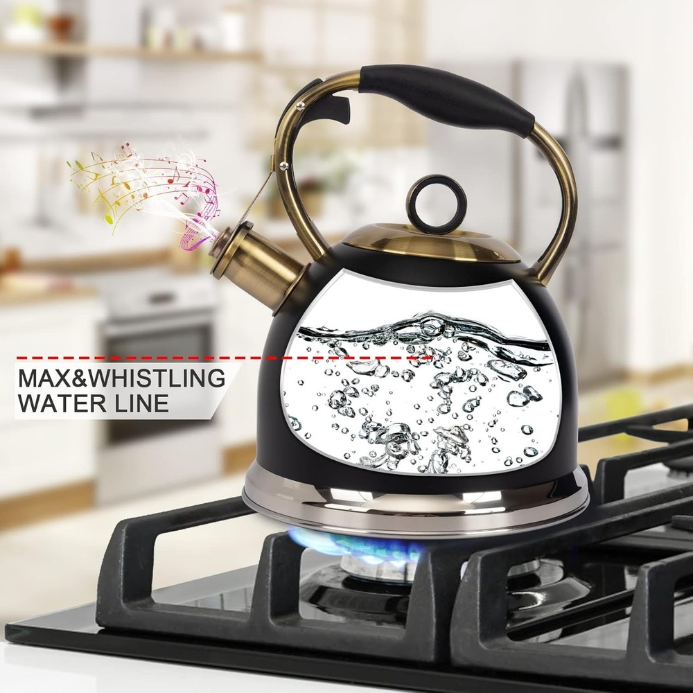 Product Features Color Black Material Stainless Steel Item Weight 1.02 Kilograms Style Modern About this Item · Stainless Steel Design : Whole teakettle body are made of stainless steel, The thick body making it more durable and sturdy. 5-layer metal bottom with high thermal conductivity for more uniform heating and longer service life. · Perfect Whistling Sound of Teakettle: This tea kettle for stovetop has a tight-fitting lid keeps steam in the hot tea kettle for rapid heating, and realse pleasant whistles sound when water reaches a boil, Loud enough to alarm you when you busy in the next room. · One-hand Trigger Teapots : This tea pot for stovetop with One-hand trigger mechanism that allows for a convenient-one handed operation.ergonomic coated and contoured handle offer a easy gripping and Pouring. · Sutable for Various Stovetops: Teapot suitable for any heat source including induction cooker, electric stove, gas stove, radiant stove.Please use midium heat source and prolong the service life,otherwise it would burn dry the tea kettle and discolor the body surface. · Warning Tips :Please using small or midium heating flame to boiling water to prevent teapots body discolor or color fading. It's normal phenomenon and can be remove if stainless steel produce "rust" or limescale inside of the kettle. If you meet any problems, please contact us and we will help you fix your issue ASAP. Description Tea Kettle -3.0 Quart Tea Kettles Stovetop Whistling Teapot Stainless Steel Tea Pots for Stove Top Whistle Tea Pot Product Details Color Black Material Stainless Steel Item Weight 1.02 Kilograms Style Modern Product Dimensions 8.26"D x 8.26"W x 9.64"H Capacity 3 Quarts Lid Material Stainless Steel Whistling Yes Handle Material Stainless Steel Is Dishwasher Safe No Size 3 Quarts Item Weight 2.25 pounds Date First Available June 7, 2022