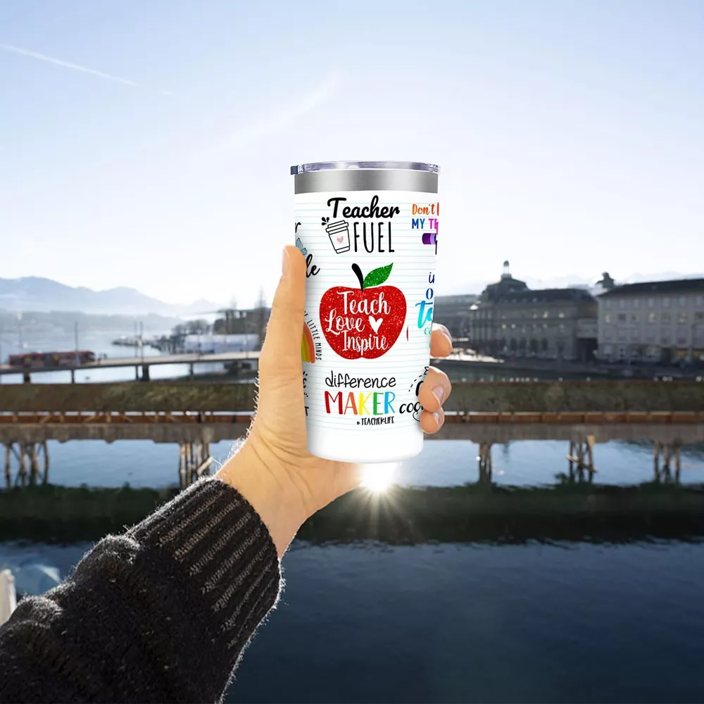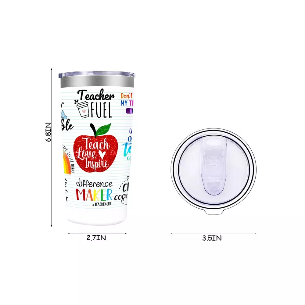 Teacher gifts: A truly great teacher is hard to find difficult to part with and impossible to forget.This is a great gift for all teachers,teacher gifts for women,teacher christmas gifts,cute gift idea for appreciation week,back to school gifts,teacher appreciations gifts,best teacher gifts from students,thank you teacher gifts for women Gift for any occasion: Perfect for office,party,vehicle or home.The influence of a good teacher can never be erased High quality: Featuring a leakproof cap.The cup body is made from food-stainless steel,double-wall vacuum,durable,unbreakable,rust-resistant,keep your drinks ice cold longer and warm beverages piping hot Cup holder friendly: The tumbler design will fit most car,vehicle,bike,and boat cup holders and with a 20 oz capacity Travel ready: Carry around your beverages whether out at the mall,soccer game,or park.Stay refreshed and hydrated no matter what adventure life takes you on