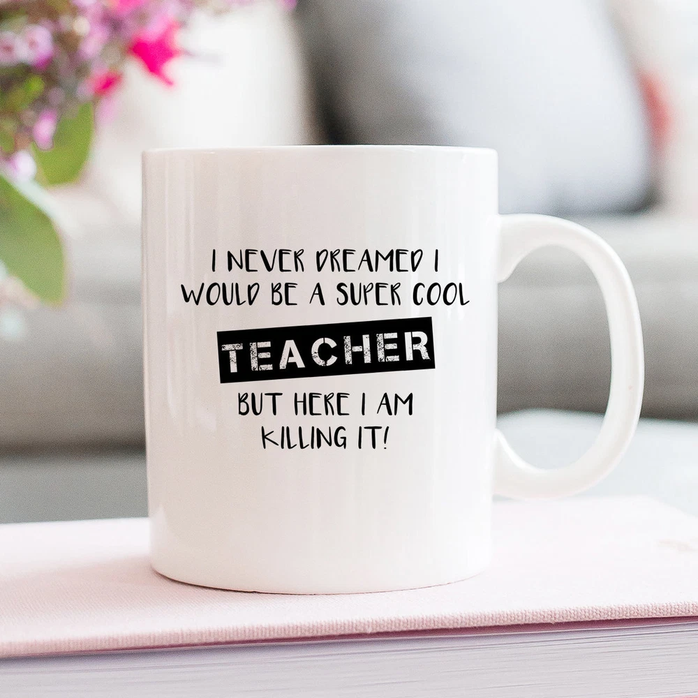 Teacher Mug Teacher Gift Gift For Teacher Teacher Appreciation Teacher Gifts Product Details.. This high quality 11oz. ceramic white mug has a premium hard coat that provides crisp and vibrant color reproduction sure to last for years. Perfect for all hot & cold beverages. The highest quality printing possible is used. It will never fade no matter how many times you wash it. Material: 100% Ceramic. Print both sides. Dishwasher and Microwave Safe. High Gloss + Premium White Finish. Printed in the U.S.A. Personalized & Custom. We support personalized and custom mug to add custom, when placing an order, you can add notes to the "order note" in shipping address section. Also you can contact us directly via message. Shipping Info. Ready to ship in 1 to 2 business days, All products are made-to-order and proudly printed in the United States. Shipped by USPS and DHL, You will receive your order in 5-7 days. Replace & Refund. All products are defective during shipping broken, chipped will be replaced free of charge. You are not satisfied with the product, we will refund 100% money to you. If any other issues arise, please do not hesitate to message, we would be more than happy to assist you.