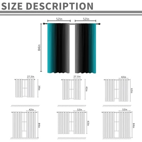 Return Policy Fast Delivery Trusted seller Teal Black Curtains Turquoise Grey Gray White Ombre Gradient Darking Modern Abstract 52W x 84L Inch Rod Pocket Curtain for Bedroom Kitchen Living Room Window Drapes Treatment Fabric 2 Panels Product Description Size: This rod pocket curtain has two panels; Each panel is 52 inch wide and 84 inch long Fabric: High-quality fabric; Soft and comfortable to the touch; Exquisite workmanship; It is not easy to fade and take off lines Multiple Functions: Suitable for most scenes and widely used in bedroom; Living room; Kitchen; Basement; Office; RV windows; Fashion and simple design can easily achieve decorative effect Well made: This unlined curtain can block 30~50% of sunlight; Which can keep your privacy and sleep undisturbed Easy to Clean: This curtain are machine washable in cold water; Do not bleach; Tumble dry low Shipping Returns Payment Shipping Shipping is FREE to all addresses other than APO/PO boxes in the lower 48 states. All our stock ships from US-based warehouses. Shipped via USPS or UPS (depending on location and package weight) Unless stated otherwise, all orders will ship within 24-72 hours of your payment being processed. Check our feedback to see the great reviews of FAST shipping we offer. Returns Seller does not accept returns Payment We currently accept payment via eBay managed payments only. Once payment is cleared, we will dispatch your shipment within 1-3 business days. Please refer to the "Shipping" tab for more information regarding shipping speed to your destination.