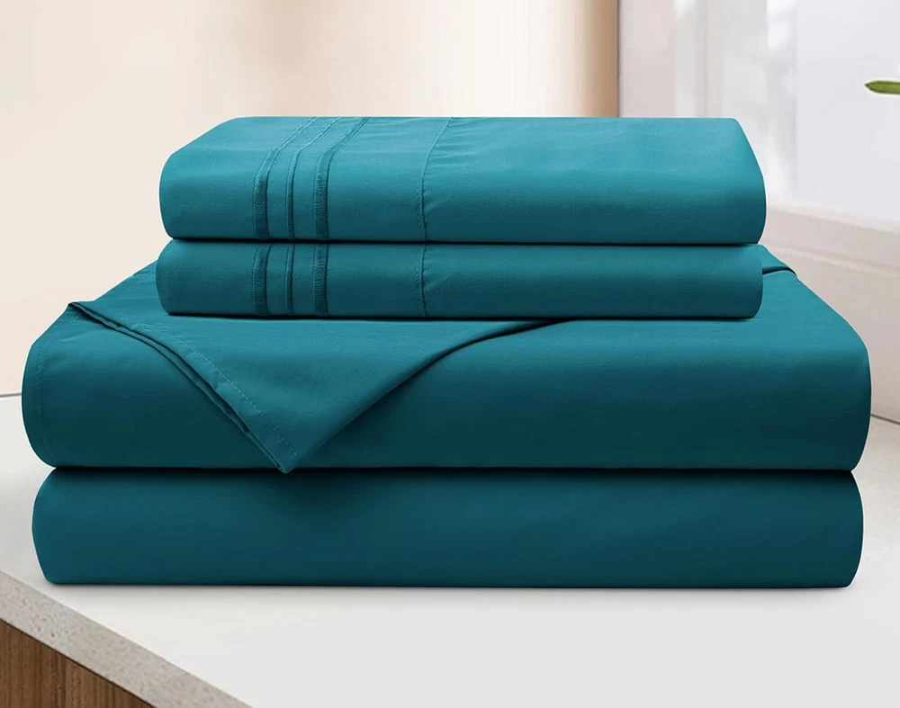 Teal Deep Pocket Queen Sheets Set - 4 Piece 1800 Thread Count Fitted Sheet