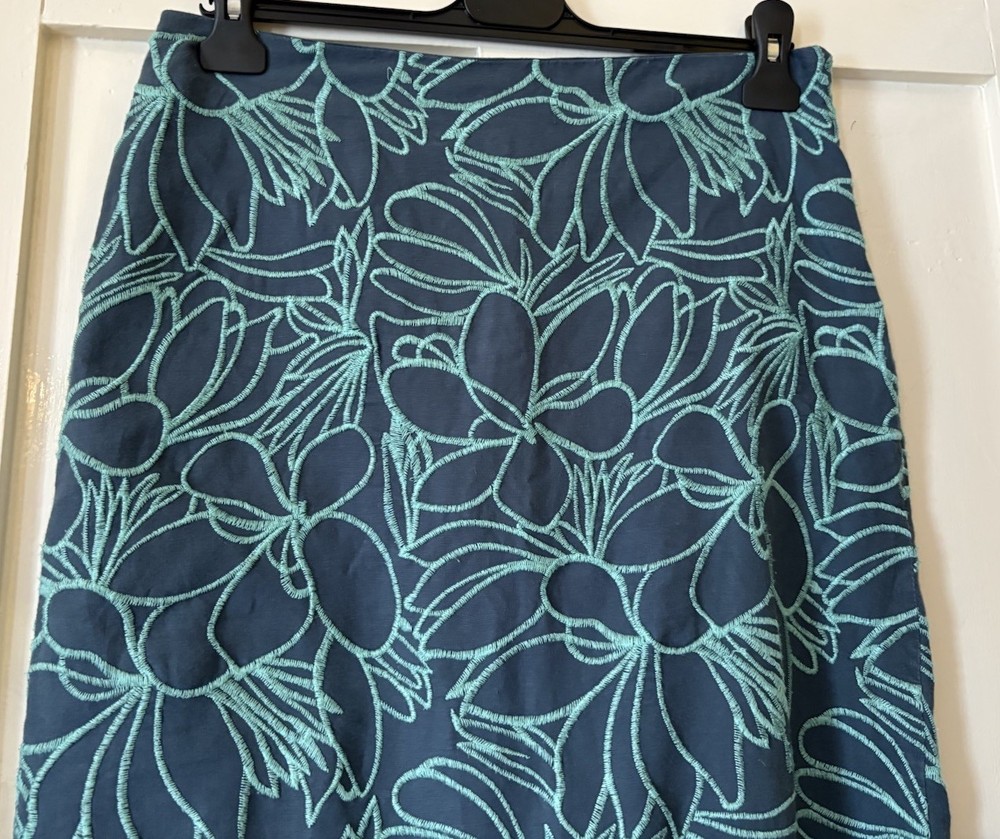 M&Co White Blue Floral Linen Blend Pull On Skirt UK20 L30 Fully Lined