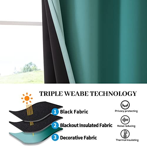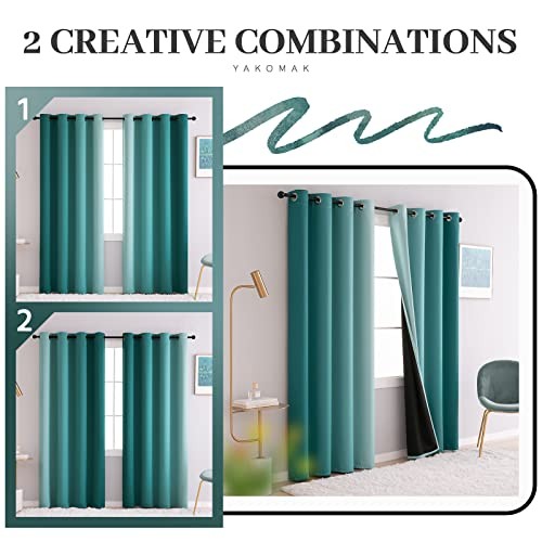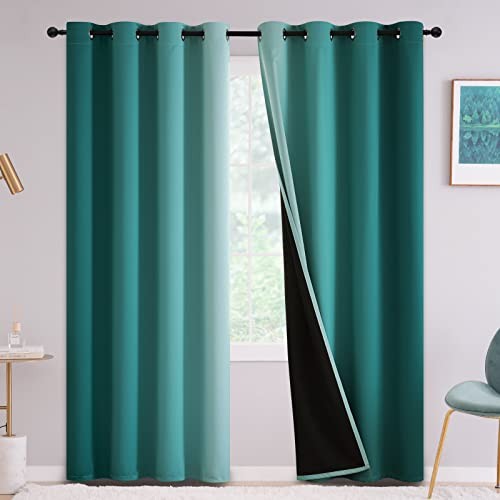 Teal Ombre Blackout Curtains for Bedroom Room Darkening Window Panels