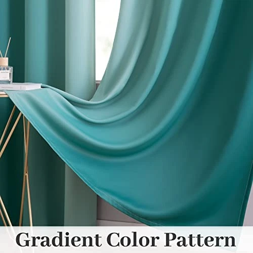 1. Absolutely love these teal ombre curtains! They block out light perfectly, making my bedroom so cozy. The gradient color adds a stylish touch, and the grommets make installation a breeze. Super soft, great quality, and arrived fast—definitely worth it!