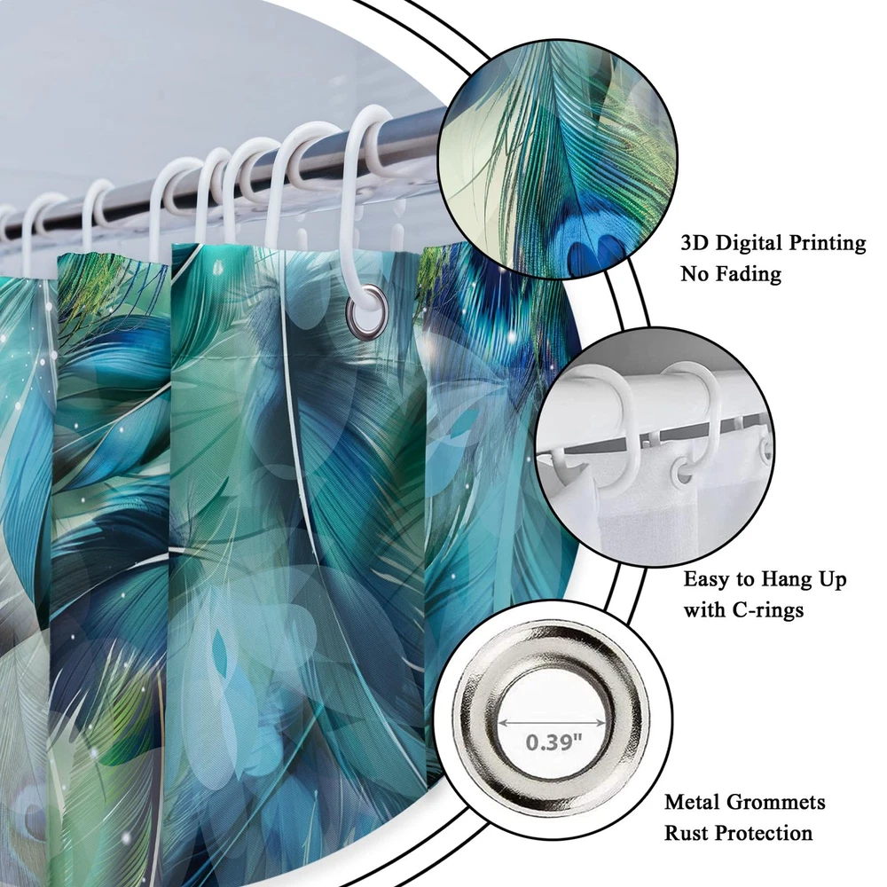 Teal Peacock Turquoise Feather Shower Curtain for Bathroom Decor 72Wx72H Inch...