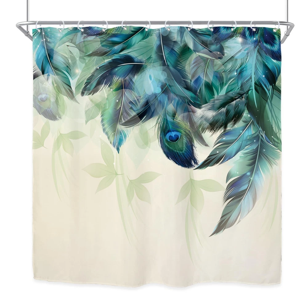 This beautiful curtain is designed with peacock feather, is made of waterproof polyester fabric, material is eco-friendly. Modern style is suitable to decorate bathroom. 【Material and Size】: Polyester waterproof fabric, 72 inches long x 72 inches wide. 【Design】: Nature Theme,Peacock Feather Pattern,Teal Blue Color. 【What' s Included】: One shower curtain and 12-Pack plastic Shower Hooks 【Function】: Waterproof, Eco-Friendly. 【Maintenance】: Machine washable in cold water, low tumble dry. Details: Material: Polyester Pattern: Peacock Feather Size: 72L*72W (Inches) Weight: 0.88 lbs What’s Included: One shower curtain panel, 12-Pack plastic Shower Hooks Notice: ★ All dimensions are measured manually with deviation (ranged) at 1-3mm. ★ Item may be a little different from the picture due to the lighting and your monitor’s display. 【Material and Size】: Polyester waterproof fabric, 72 inches long x 72 inches wide. 【Design】: Nature Theme,Peacock Feather Pattern,Teal Blue Color. 【What' s Included】: One shower curtain and 12-Pack plastic Shower Hooks 【Function】: Waterproof, Eco-Friendly. 【Maintenance】: Machine washable in cold water, low tumble dry.