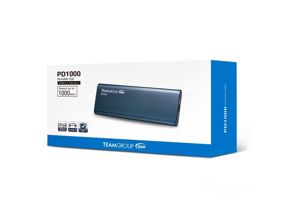 Team Group PD1000 IP68 1TB Portable SSD USB3.2 Gen 2, Read/Write 1000MB/s Team Group PD1000 IP68 1TB Portable SSD USB3.2 Gen 2, Read/Write 1000MB/s (T8FED6001T0C108) Features PD1000 uses the latest USB 3.2 Gen 2 interface, with data transfer speed up to 1,000 MB/s IP68 waterproof, dustproof, and pressure-proof certification. Military-grade test of US MIL-STD-810G 516.6 Procedure IV. The rigid structure is designed to withstand the weight of 1,600kg Aluminum alloy material with an anodized matte finish.with dimensions: 107(L) x 40(W) x 10.9(H)mm, and weighs only 75 grams Accessories included: (1) USB3.2 Type-A to Type-C Cable (2)USB3.2 Type-C to Type-C Cable Manufacturer Warranty: 3-year limited warranty. Free Technical Support and Customer Service on TEAMGROUP's official website. The definition and conditions of TBW are based on the JEDEC standard. Fast and Free Shipping You're already purchasing the item. Why pay additional for shipping, especially slow shipping? We get your order shipped out within 1-business day and delivered to your doorstep as quickly as possible. Competitive Pricing With our dynamic pricing model, our prices are always competitive. Our prices are some of the lowest that you will find on the internet. Rest assured that you're getting a good deal when purchasing with us. 30-day Money Back Guarantee We are committed to making sure that you leave this transaction satisfied. If you're unhappy with the product for any reason, you may return it back for your money-back or a replacement within 30 days. No questions asked!