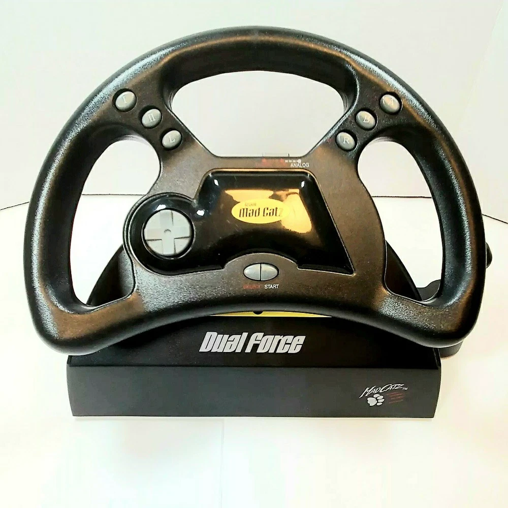 Team Mad Catz Dual Force Racing Steering Wheel/Pedals PS1 For PlayStation. Pre-Owned-Does Not Come with Oriignal Box! Note: Item weighs 7 pounds! Thank you for stopping by!