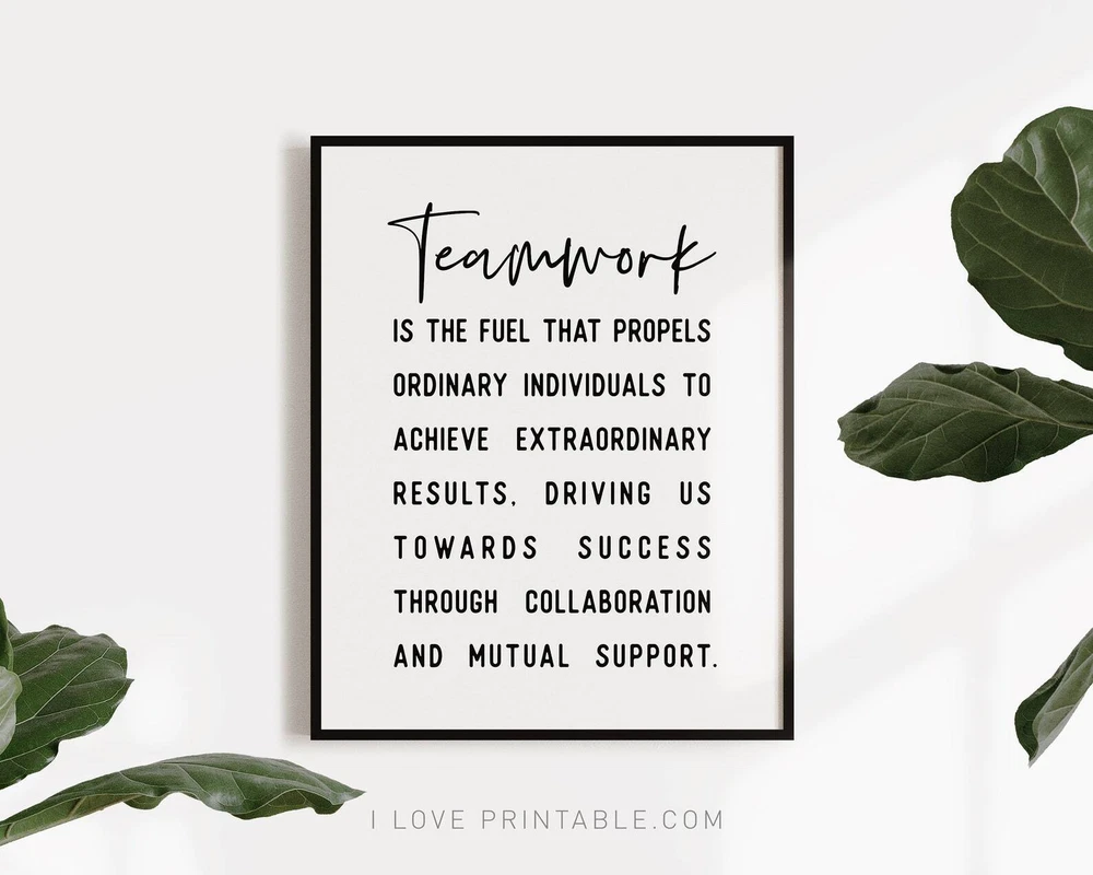Teamwork Quotes Printable Art Motivational Wall Art For Office Home Office Decor Prints Art Coworkers Gift Material: Premium luster photo paper Print type: Inkjet printing One side printed + The finish provides the highest possible resolution and color saturation + Lasts up to 200 years in color and 400 years in black-and-white + Printed on high-quality resin-coated photo base paper medium + Posters can be hung with double-sided tape, tacks, or framed + Hand washing with a gentle cry cloth is recommended for extended durability I will hand select the best choice of paper for your chosen design to ensure top quality results for a beautiful, bright and luxurious print. All prints are sealed in cellophane slips for protection during transportation, and are shipped in a protective cardboard envelope.