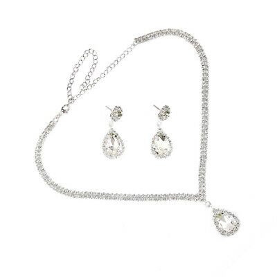 Store Home | Home & Garden | eBay Motors | Business & Industrial | Computers/Tablets & Networking | Consumer Electronics | Crafts | Pet Supplies | Clothing, Shoes & Accessories | Cell Phones & Accessories | Jewelry & Watches Teardrop Rhinestone Jewelry Necklace Earring Set Wedding Party Costume Description : Beautiful and elegant , diamante necklace with matching earrings This delicate jewelry set used high quality sparkling rhinestones , brings you gorgeous and charming Ideal for wedding , banquets , prom or any other special occasions Specification : Material : Alloy , rhinestone Color : Silver Necklace length : Approx 37 - 53cm / 14 . 6 - 20 . 8 inch ( adjustable ) Earring length : Approx 4 . 5cm / 1 . 77 inch Earring style : Piercing Package Includes : 1 Piece Necklace 1 Pair of earrings Note : Since the size above is measured by hand , the size of the actual item you received could be slightly different from the size above . Meanwhile , please be reminded that due to lighting effects , monitor 39 ; s brightness / contrast settings etc , there could be some slight differences in the color tone of the pictures and the actual item . Shipping And Handling Policy People always bought together with