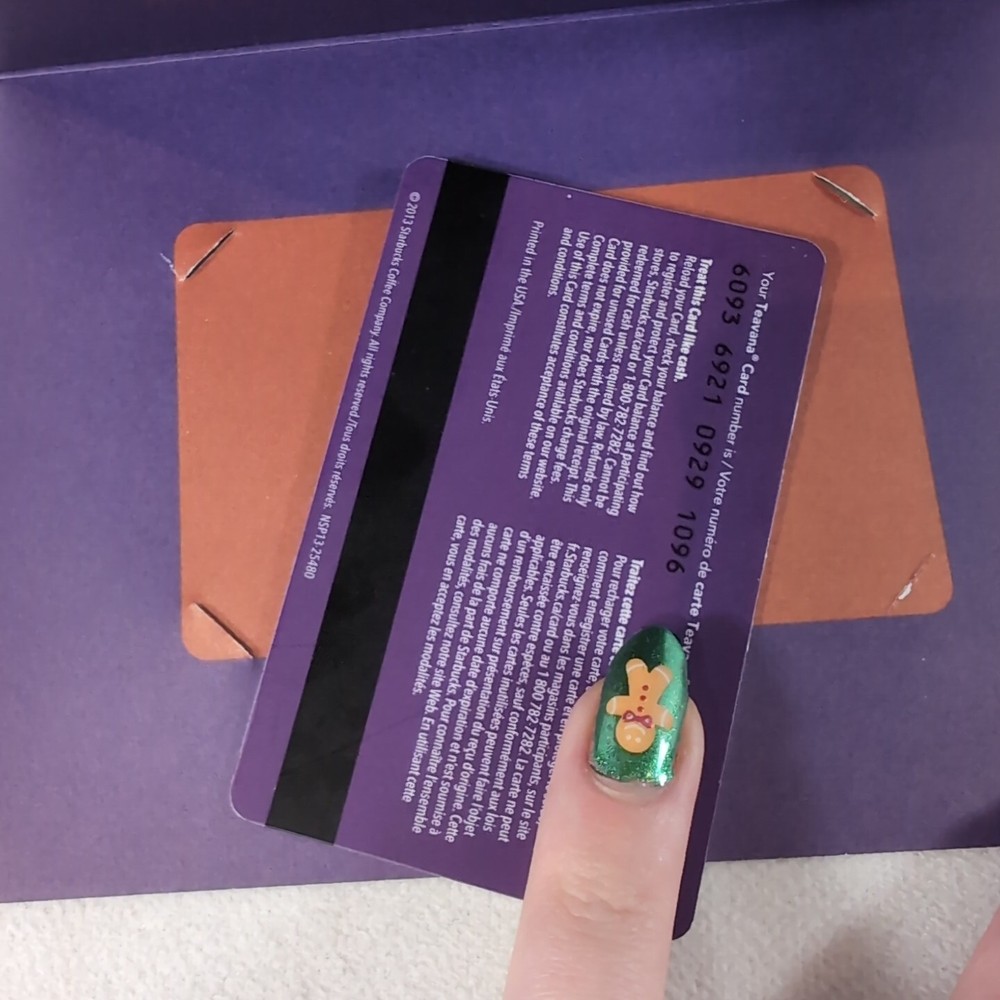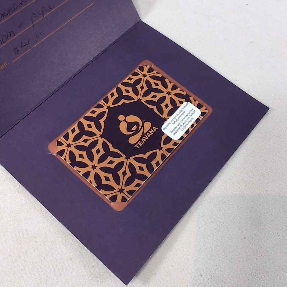 Teavana Gift Card $40 Loaded Canada 2013 Starbucks Coffee Purple Gold HTF Rare! Tested on the Starbucks Canada website, showing $40. Please note, I, the seller, removed the cover for the code on the back to check the balance, no one else has seen the code. The envelope that comes with this card has been dedicated, and has some minimal wear. While the card has not been used, there is some minimal wear. Please see pictures. We are a small home run business from Canada - Hoping to find you items that you love! Thank you for checking out this listing, please let me know if you have any questions 😊 Please check out the rest of our listings. Buy more, save more. Order multiple listings and we’ll pack them together to save on your shipping. All reasonable offers accepted. Fast Shipper! One day average ship time! This shop uses recycled shipping material when possible ♻️♻️♻️ If you do not want recycled shipping material, please comment before ordering. 🤗 International buyers – please note : Import duties, taxes, and charges aren't included in the item price or postage cost. These charges are the buyer's responsibility. Please check with your country's customs office to determine what these additional costs will be prior to bidding or buying.