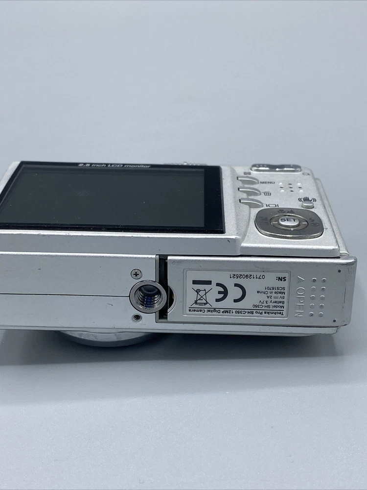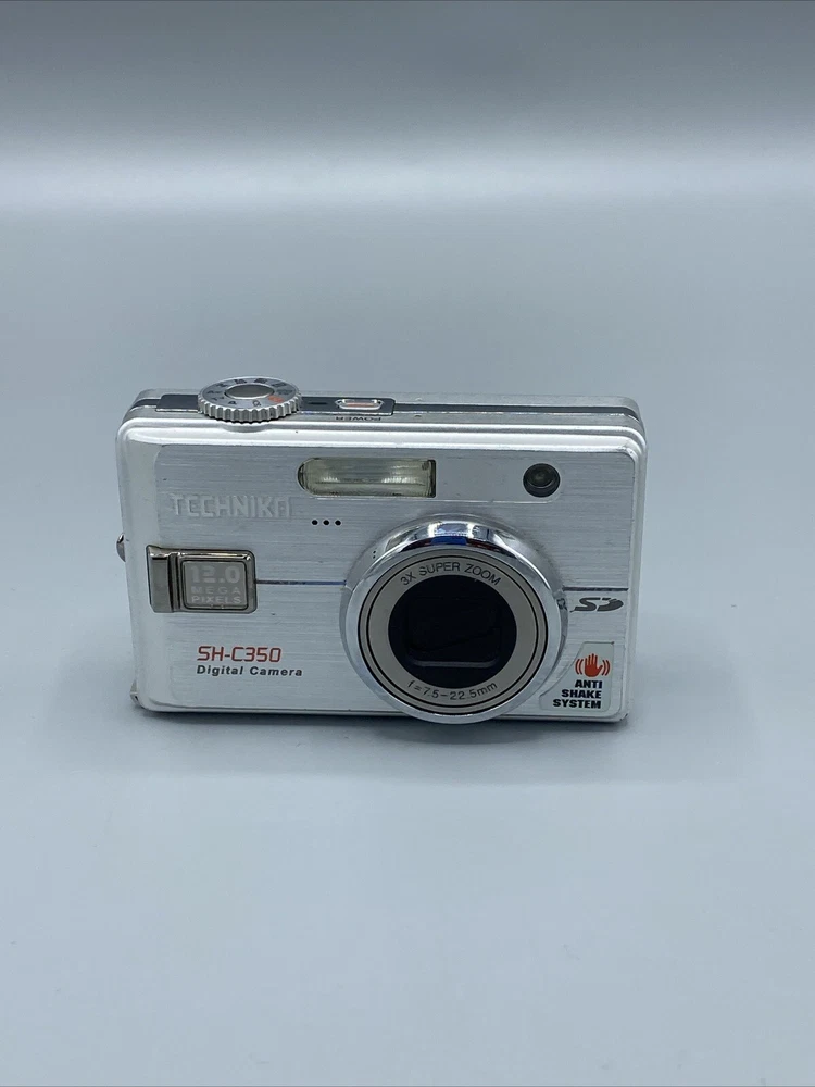 Item Height: 5.5cm Item Width: 3.5cm Type: Compact Item Length: 9cm Optical Zoom: 3x Colour: Silver Maximum Resolution: 12.0 MP Brand: Technika Model: SH-C350 Seller Notes: “UNTESTED no lead to charge so unable to test” Battery Type: Lithium