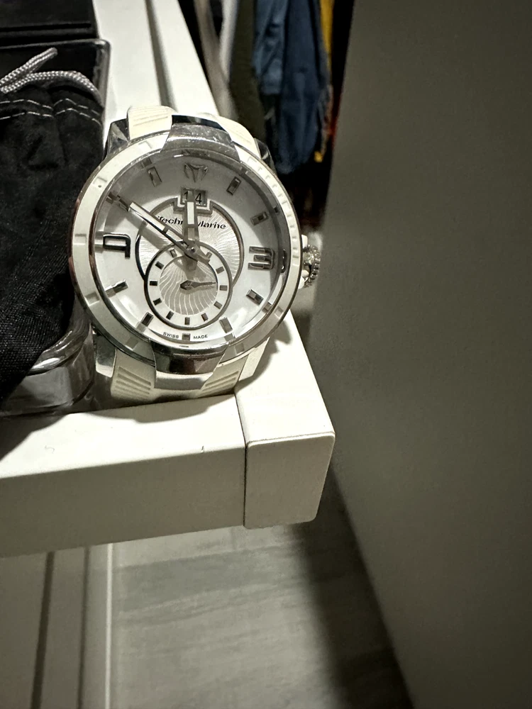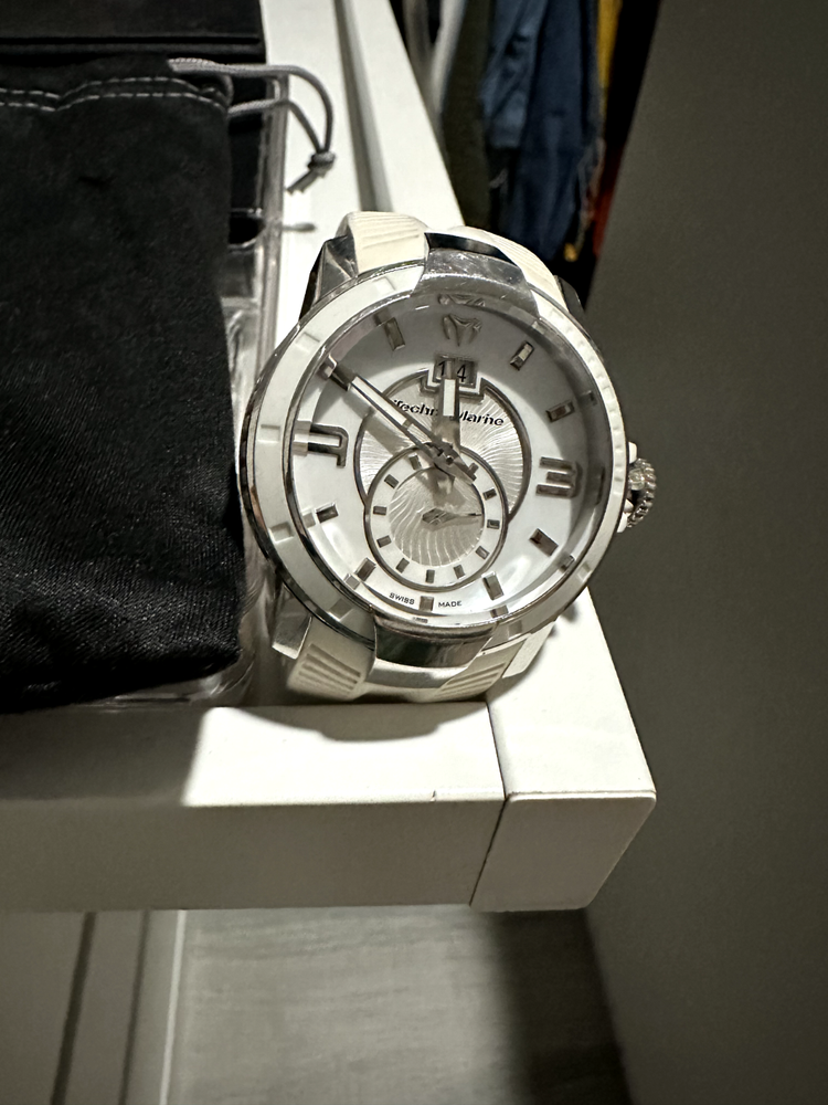 This TechnoMarine UF6 wristwatch is a stylish and functional accessory for the modern women. The white silicone strap and stainless steel case perfectly complement the white mother of pearl dial, creating a sleek and sophisticated look. With features such as date display, water resistance, and a chronograph function, this watch is not only fashionable but also practical. It is powered by quartz battery movement and is suitable for adult women Add this TechnoMarine UF6 watch to your collection and elevate your style game.