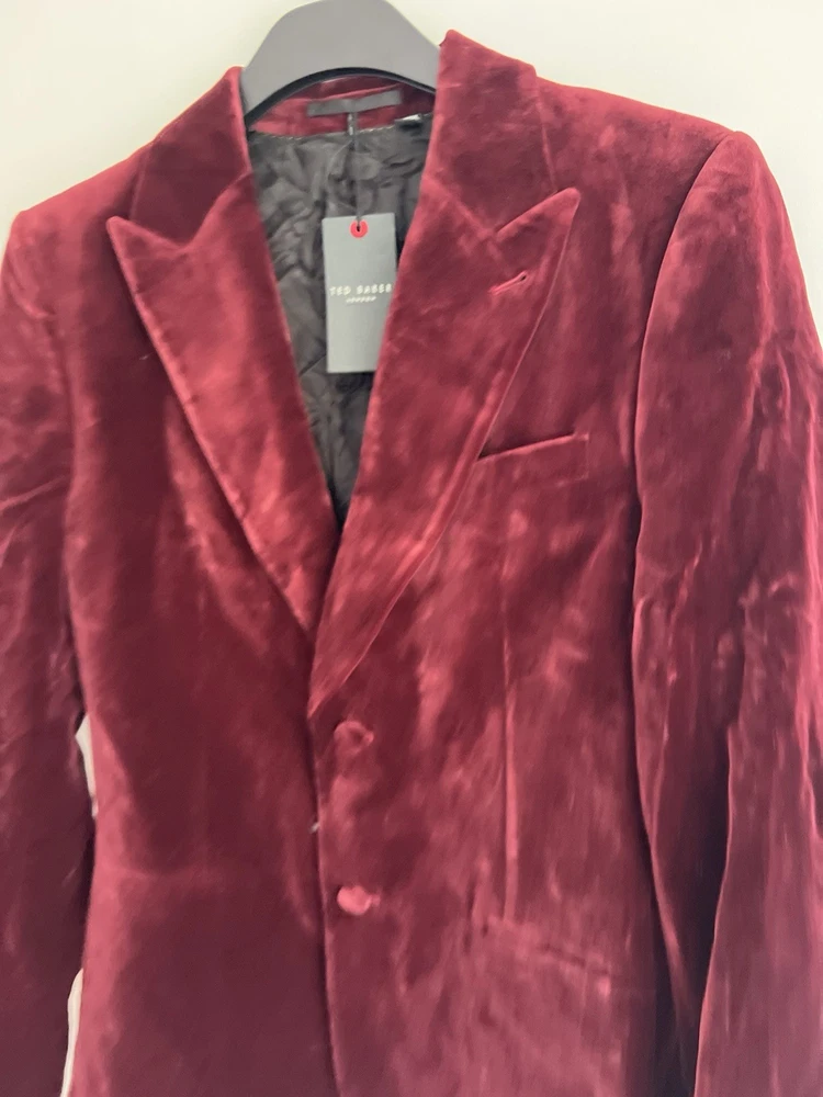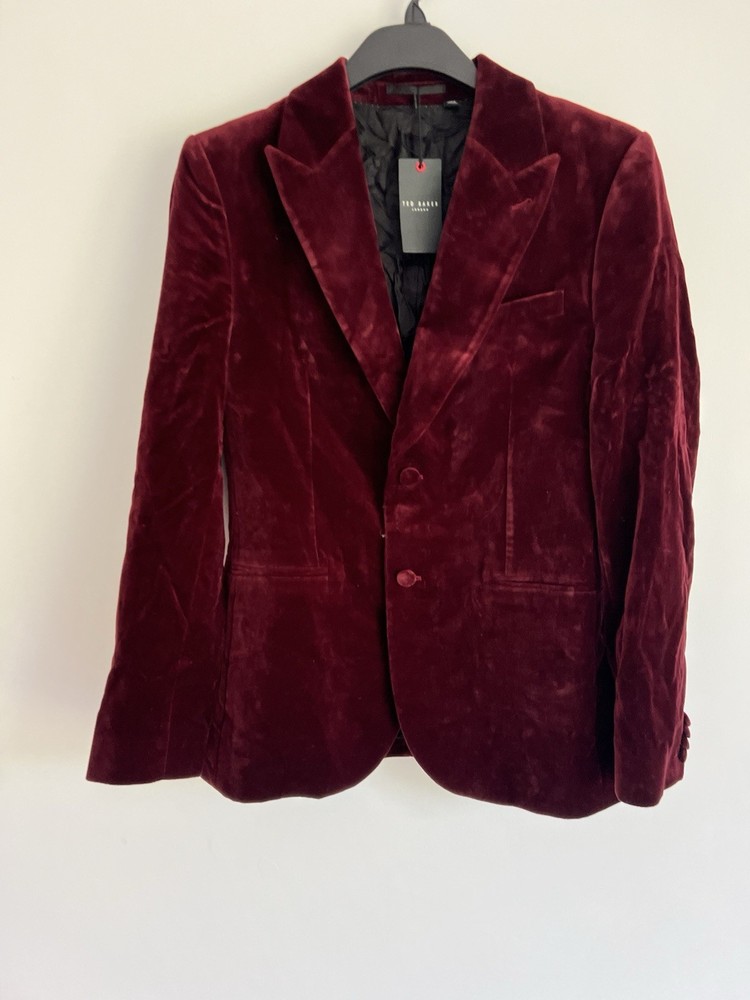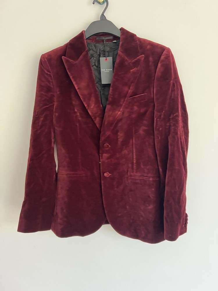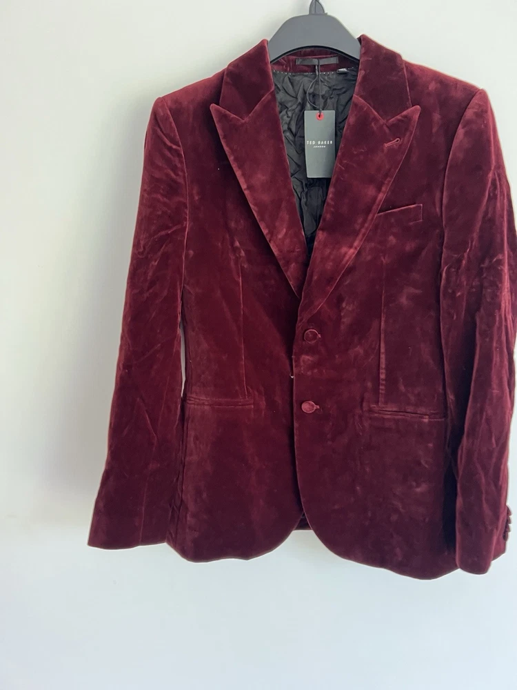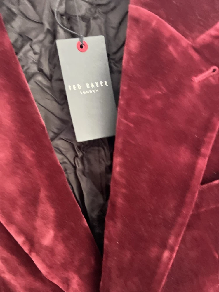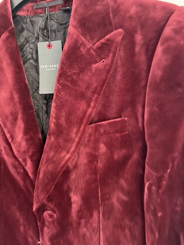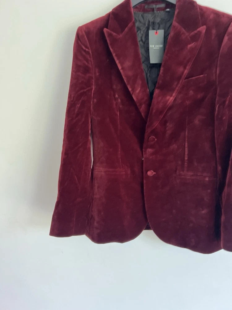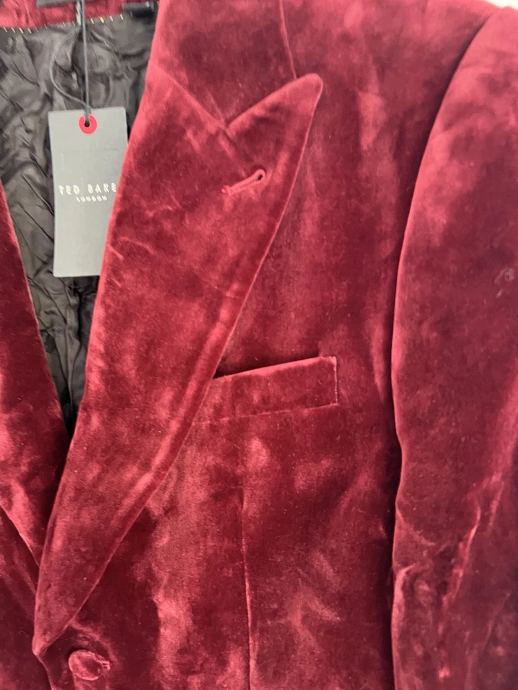 Occasion: Business, Casual, Travel Jacket/Coat Length: Short Handmade: No Fabric Type: Velvet Lining Material: Polyester Garment Care: Machine Washable Front Type: Flat Front Brand: Ted Baker Type: Blazer Size Type: Regular EAN: DoesNotApply Jacket Front Button Style: One-Button Fit: Regular Jacket Lapel Style: Notch Personalise: No Number of Pieces: 1 Peice Jacket Sleeve Button Style: One Chest Size: M gtin13: DoesNotApply Colour: Red Material: Velvet#, Velvet Pattern: No Pattern Jacket Vent Style: Double-Vented Features: Inner Pockets Country/Region of Manufacture: Unknown Theme: Prom, Dinner Jacket, Bathj Size: M Season: Autumn, Spring, Summer, Winter Style: Tuxedo Jacket Cut: Single-Breasted Department: Men Vintage: No