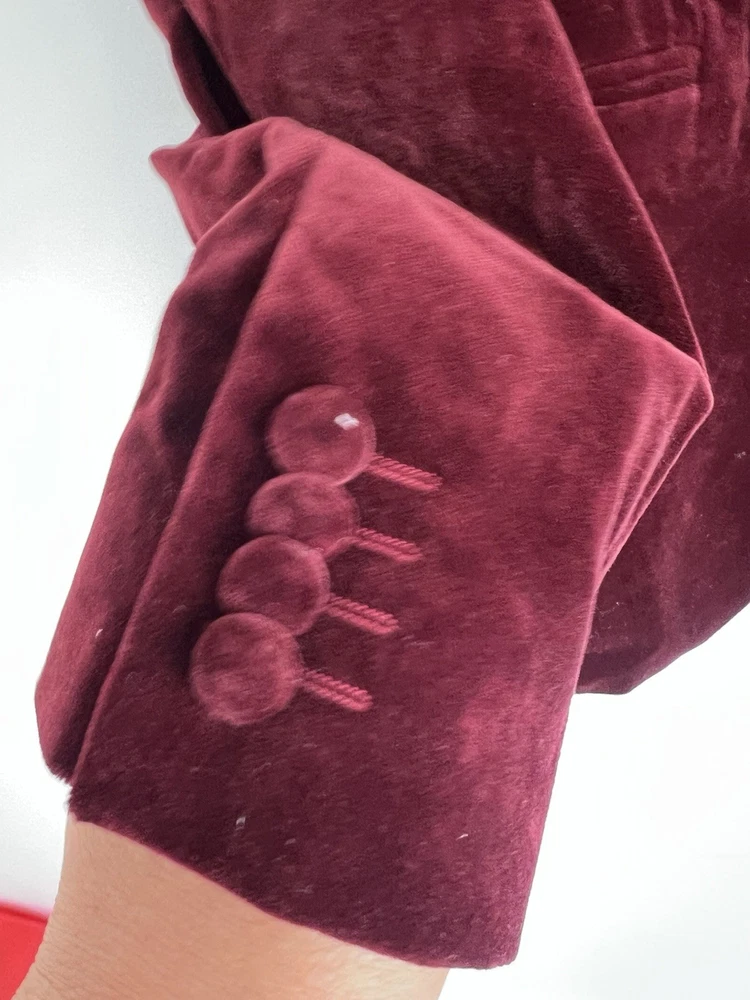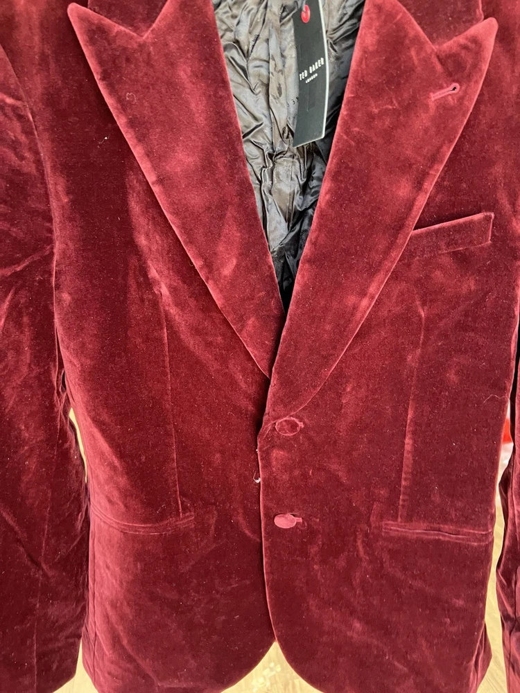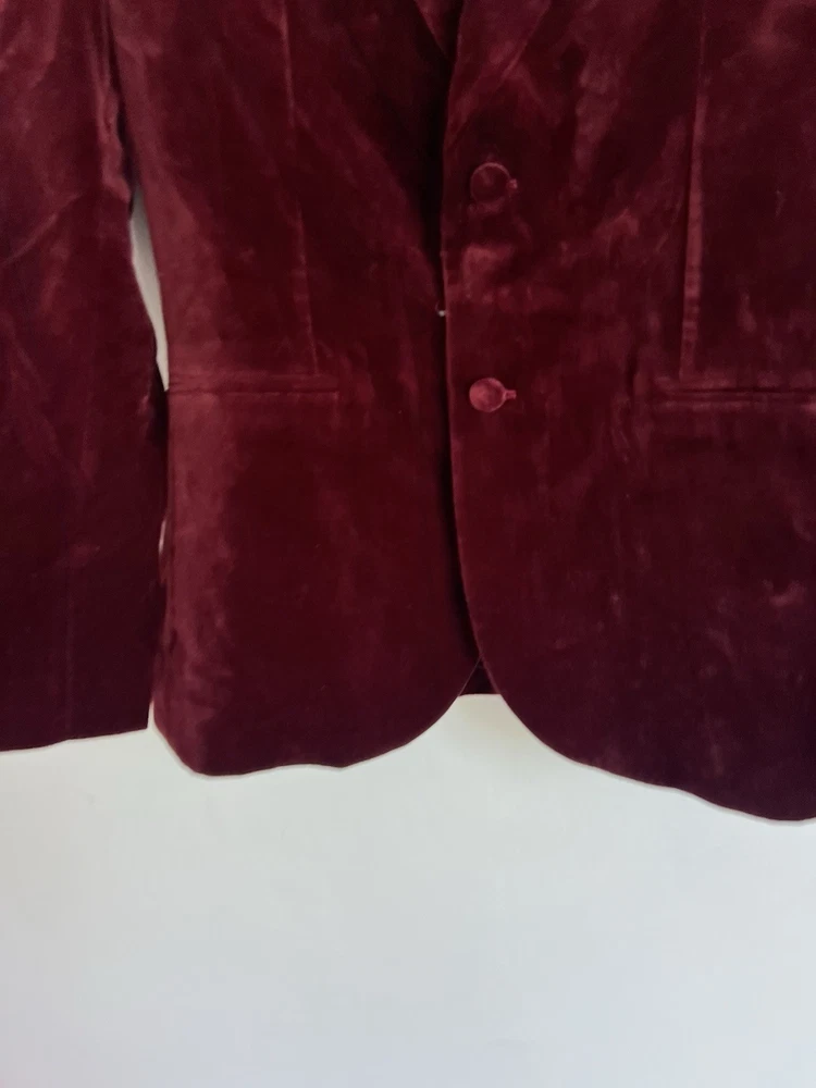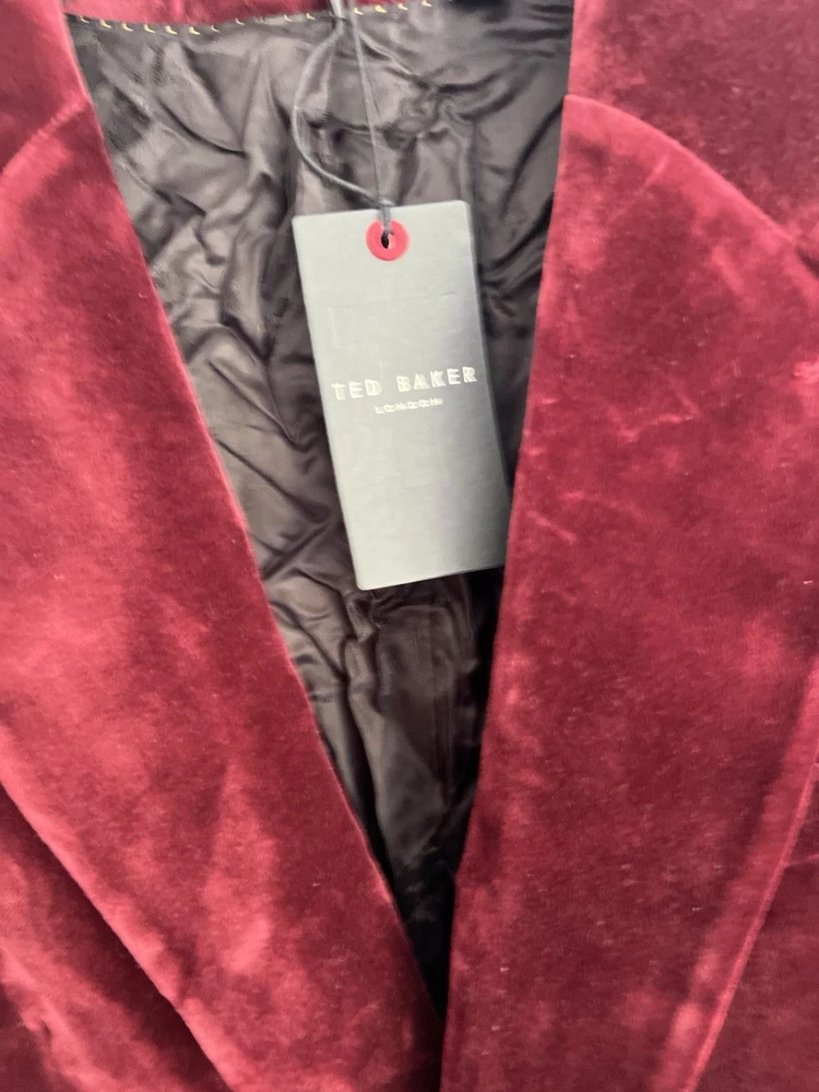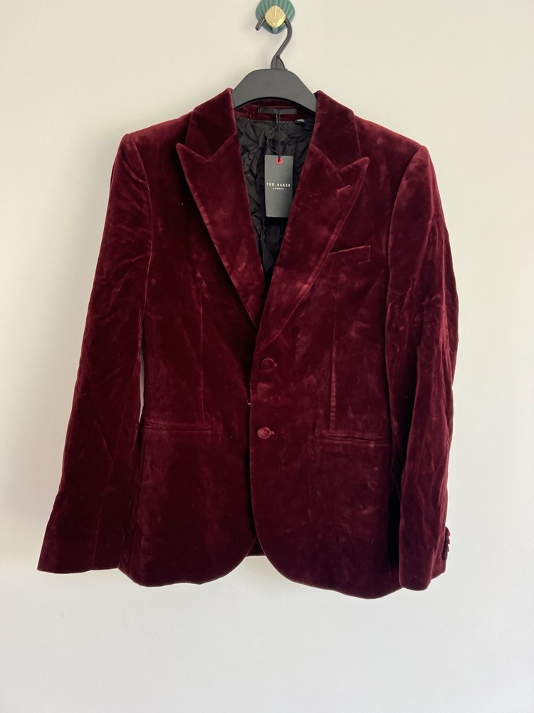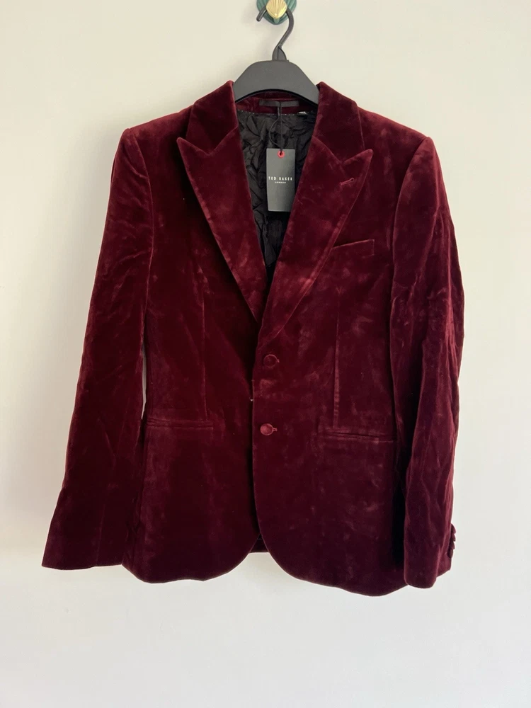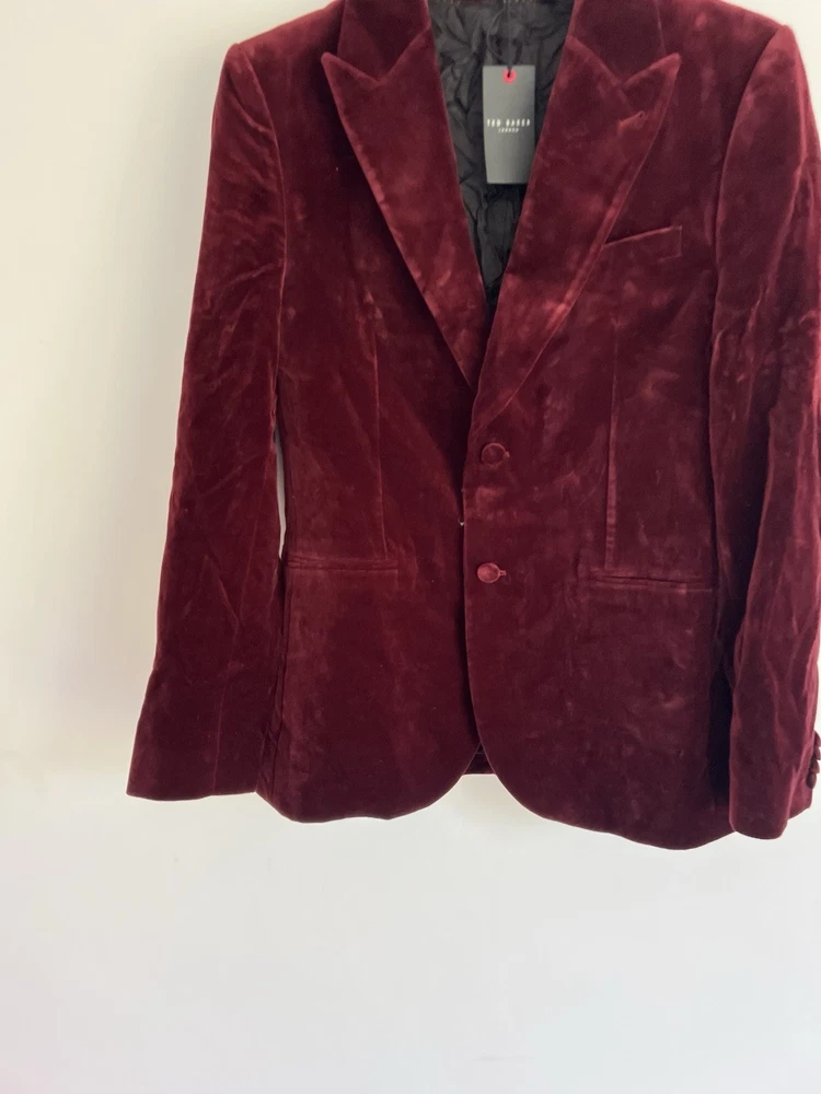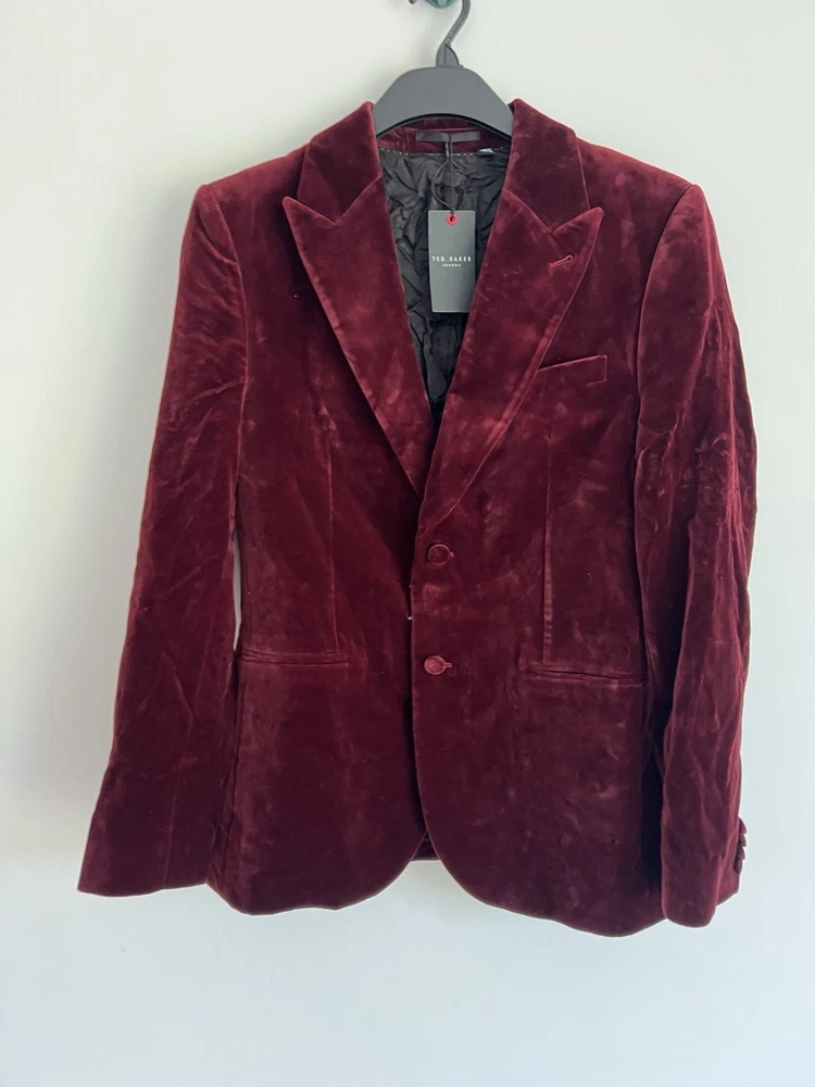Occasion: Business, Casual, Travel Jacket/Coat Length: Short Handmade: No Fabric Type: Velvet Lining Material: Polyester Garment Care: Machine Washable Front Type: Flat Front Brand: Ted Baker Type: Blazer Size Type: Regular EAN: DoesNotApply Jacket Front Button Style: One-Button Fit: Regular Jacket Lapel Style: Notch Personalise: No Number of Pieces: 1 Peice Jacket Sleeve Button Style: One Chest Size: M gtin13: DoesNotApply Colour: Red Material: Velvet#, Velvet Pattern: No Pattern Jacket Vent Style: Double-Vented Features: Inner Pockets Country/Region of Manufacture: Unknown Theme: Prom, Dinner Jacket, Bathj Size: M Season: Autumn, Spring, Summer, Winter Style: Tuxedo Jacket Cut: Single-Breasted Department: Men Vintage: No