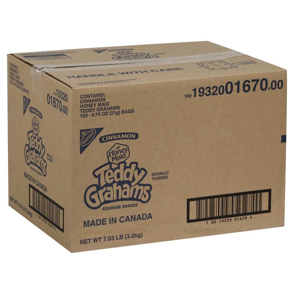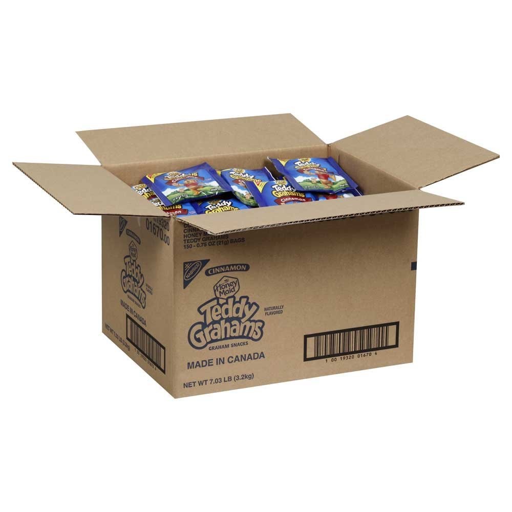 << The item is a Size 0.75 Ounce (Pack of 150) >> Enjoy a wholesome crunch with Teddy Grahams Cinnamon Graham Snacks. These cute bear-shaped graham cookies are lightly sweetened and sprinkled with warm cinnamon for a snack both kids and adults love. Each 0.75 oz pack is perfectly portioned for lunchboxes, road trips, or grab-and-go snacking. With 150 packs in this bulk case, you’ll always have a tasty treat ready to share. 0.75 Ounce (Pack of 150) Enjoy a wholesome crunch with Teddy Grahams Cinnamon Graham Snacks. These cute bear-shaped graham cookies are lightly sweetened and sprinkled with warm cinnamon for a snack both kids and adults love. Each 0.75 oz pack is perfectly portioned for lunchboxes, road trips, or grab-and-go snacking. With 150 packs in this bulk case, you’ll always have a tasty treat ready to share. Includes 150 single-serve 0.75 oz packs of cinnamon Teddy Grahams || Bear-shaped graham cookies with a warm cinnamon flavor || Perfect for school lunches, after-school snacks, or on-the-go treats || Made with whole grain and no high fructose corn syrup || Ideal for bulk storage, parties, events, or vending