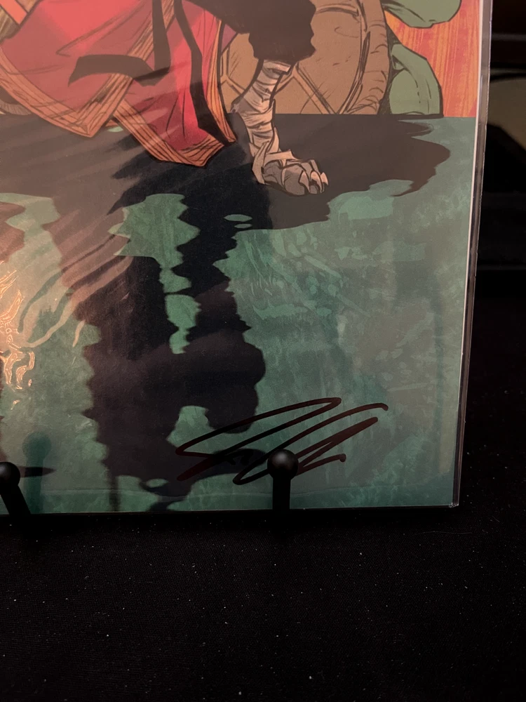 Dive into the action-packed universe of the Teenage Mutant Ninja Turtles with the IDW Publishing exclusive from San Diego Comic Con. Teenage Mutant Ninja Turtles #1 comes vibrantly illustrated with a Joelle Jones variant cover, boasting a dynamic comic sketch art style that brings the iconic characters to life. Esteemed by collectors and fans alike, this edition is graced with the signature of renowned writer Jason Aaron, elevating its desirability and uniqueness.This single issue comic book is a treasure for enthusiasts of the genre, featuring the first printing of the Modern Age (1992-Now). It is fully boarded and bagged to ensure preservation and is accompanied by Certificates of Authenticity (COA) for the signed content. A key issue that marks a significant character appearance, this limited edition piece is a must-have for both long-standing followers and newcomers to the Teenage Mutant Ninja Turtles saga.